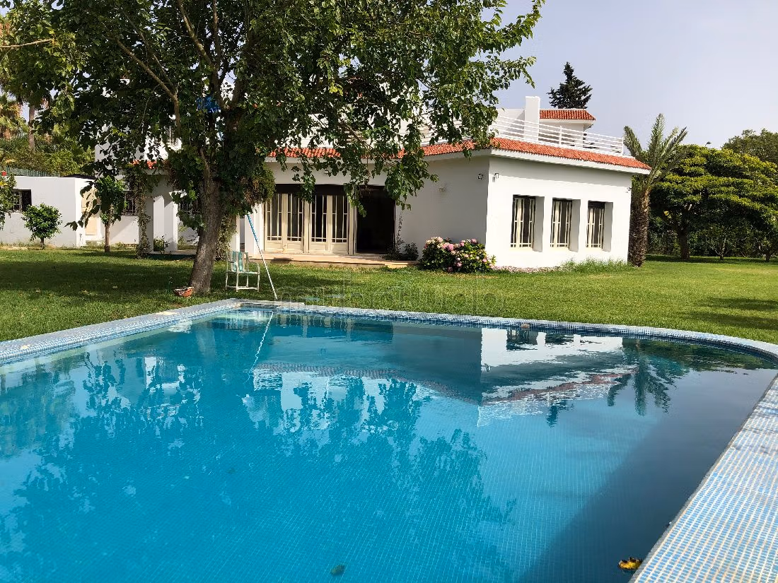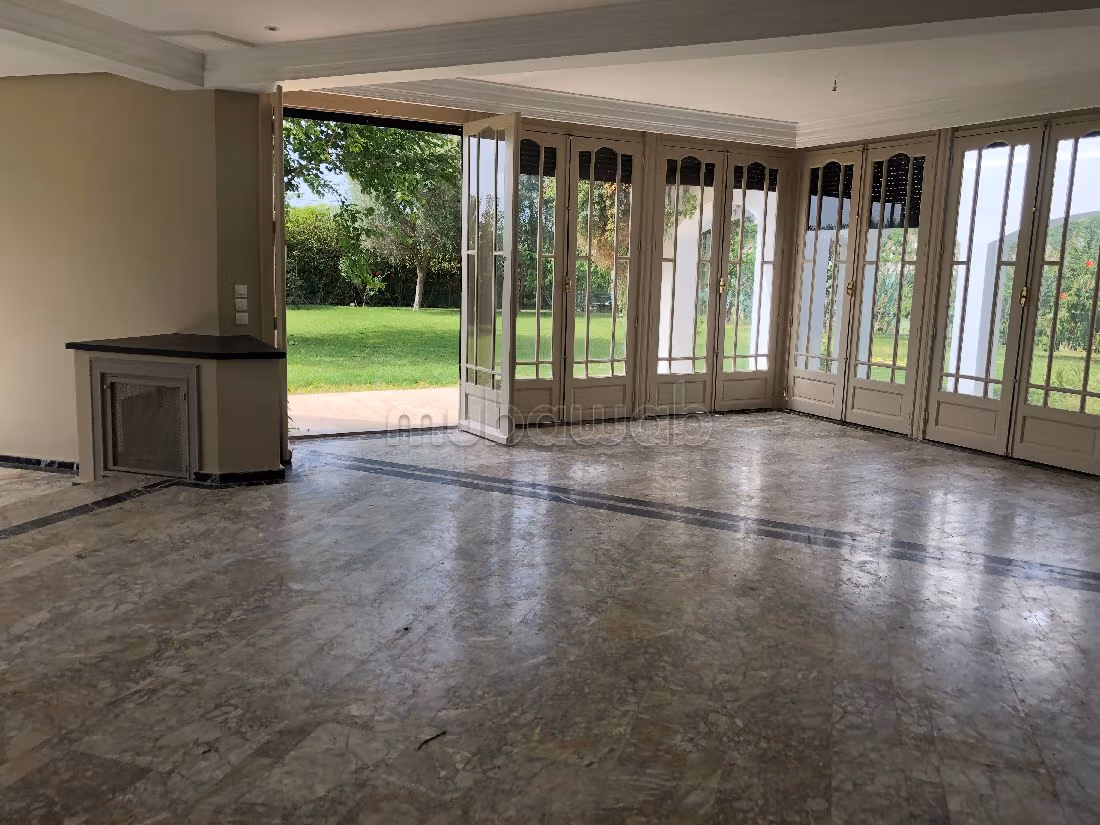 فيلا فاخرة للإيجار. الثمن 30,000 د.م. غرف 5، 4 حمامات ، مساحة 400 متر مربع. 6 قطع. أقل من 20 سنة. خاصية الأرض الرخام . .استمتع براحة المدفأة ومكيف الهواء. الإقامة لديها خدمة الحراسة وحمام سباحة.