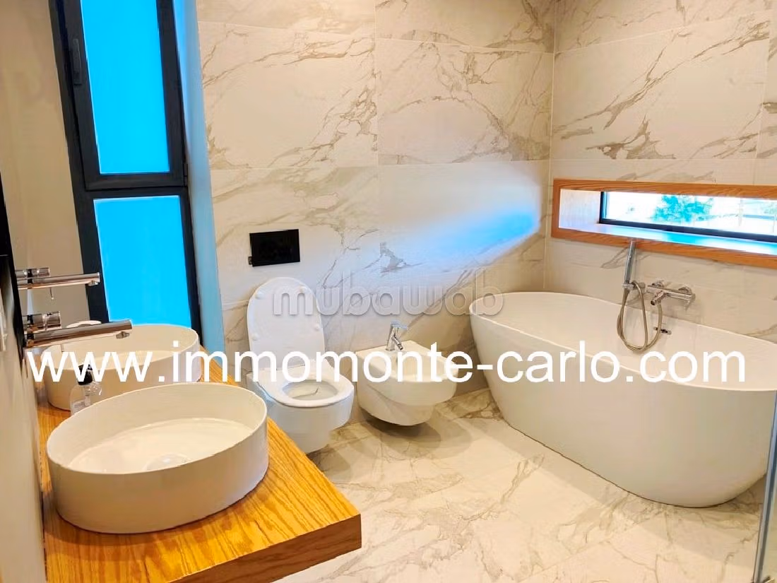 فيلا إستثنائية للإيجار. الثمن 38,000 د.م. غرف 5، 4 حمامات ، مساحة 360 متر مربع. 7 قطع رائعة. جديد. نوع الأرض الرخام . .الإقامة مجهزة تجهيزا كاملا مع موقف للسيارات. يوجد أيضًا حديقة وشرفة جميلة.