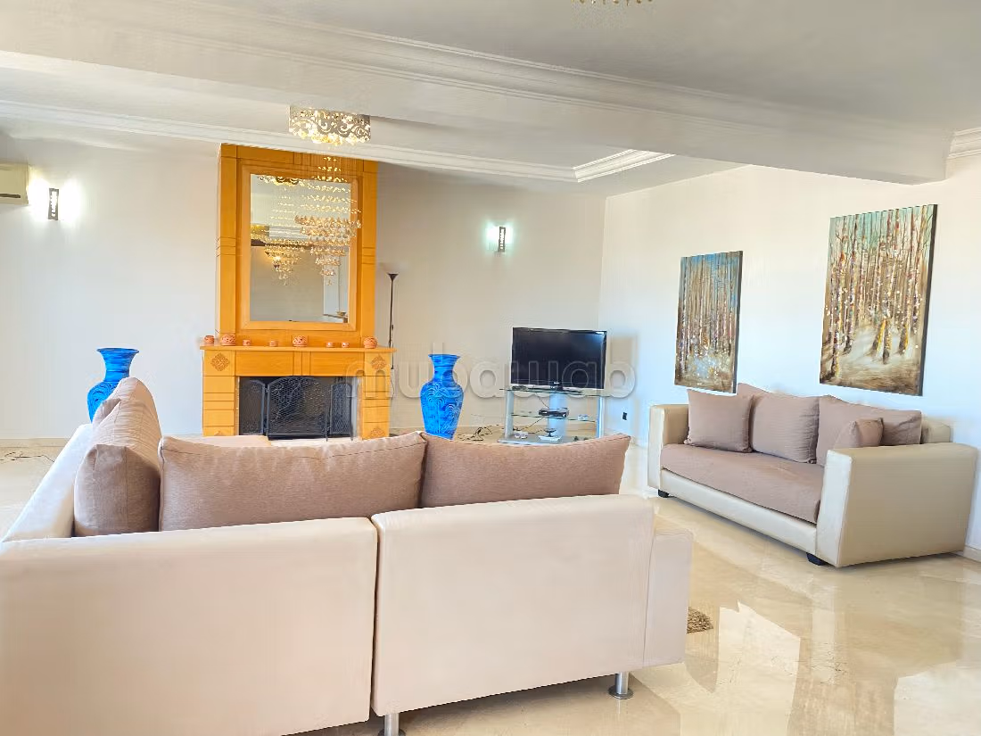 إمتيازات عديدة لهذه الشقة المخصصة للإيجار. السعر 23,500 د.م. تشمل 4 أجزاء، 3 غرف ، 3 حمامات 215 متر مربع. الطابق الثالث. أقل من 20 سنة. خاصية الأرض الرخام . مفروشة جيدا.