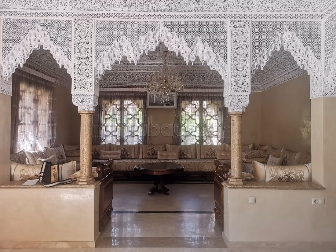 حدد موعد زيارتك الآن لهذه الفيلا الاستثنائية بمراكش. مطبخ مجهز جيدا. صالون عصري.