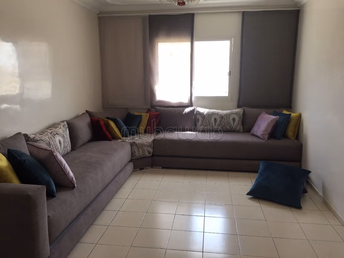 هذه الشقة للبيع ب النسيم 1. .زخرفة تقليدية وسط صالة مغربية جميلة. تم تجهيز مكان الإقامة أيضًا بطبق استقبال بث الأقمار الصناعية كما أن الإقامة جد آمنة. حديقة خاصة ومصعد في الإقامة.