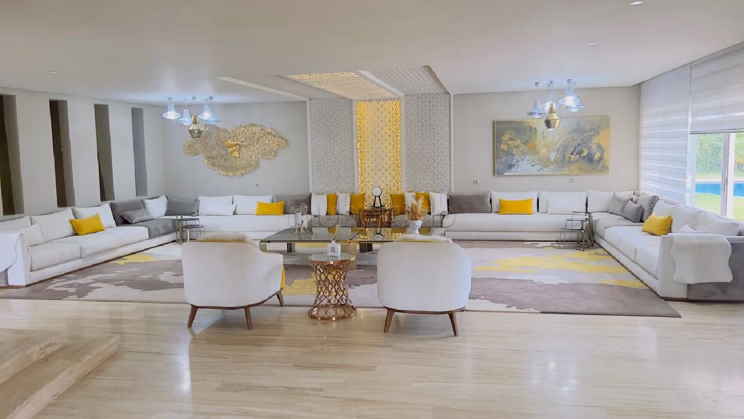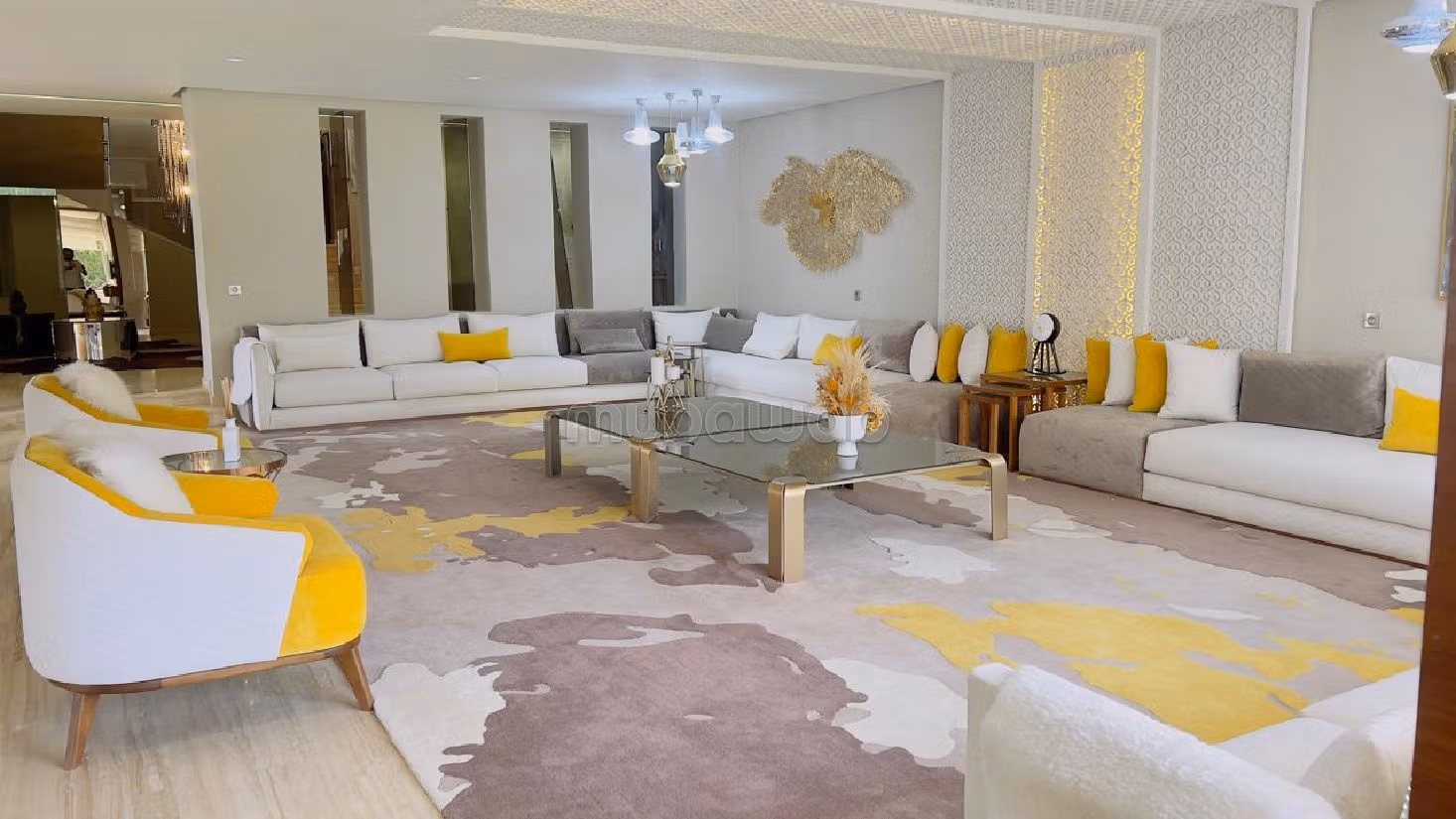 تعال لاكتشاف فيلا ومنزل فاخر للكراء بالسويسي. .إقامة مؤمنة وباب ممتاز. يحتوي مكان الإقامة أيضًا على طبق الأقمار الصناعية. .استمتع بدفء المدفأة. الإقامة لديها خدمة الحراسة بالبواب وحمام سباحة.