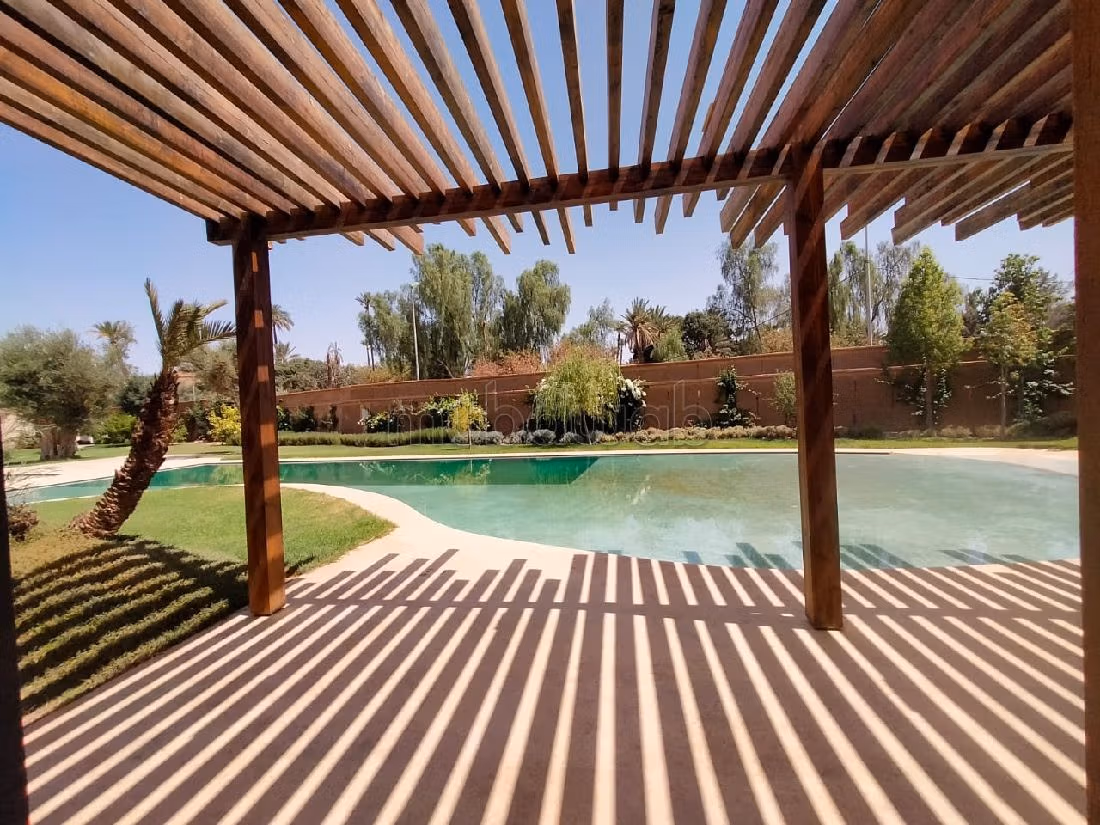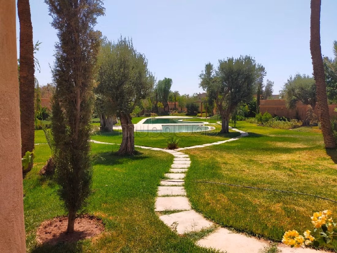 حدد موعد زيارتك الآن لهذه الفيلا الاستثنائية بمراكش. زخرفة تقليدية وسط صالون مغربي جميل. إقامة آمنة و مؤمنة. يمكنك الإستمتاع بالشرفة والحديقة. مطبخ مجهز.