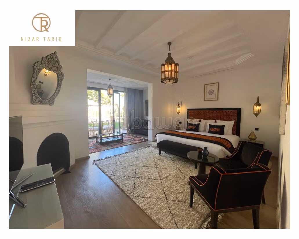 حدد موعد زيارتك الآن لهذه الفيلا الاستثنائية بمراكش. .الراحة والأمان مع المدفئة المركزية والزجاج المزدوج. إضافة إلى منظر رائع على الجبال. تتكون خارجيا من حديقة وشرفة. فرن ميكرويف.