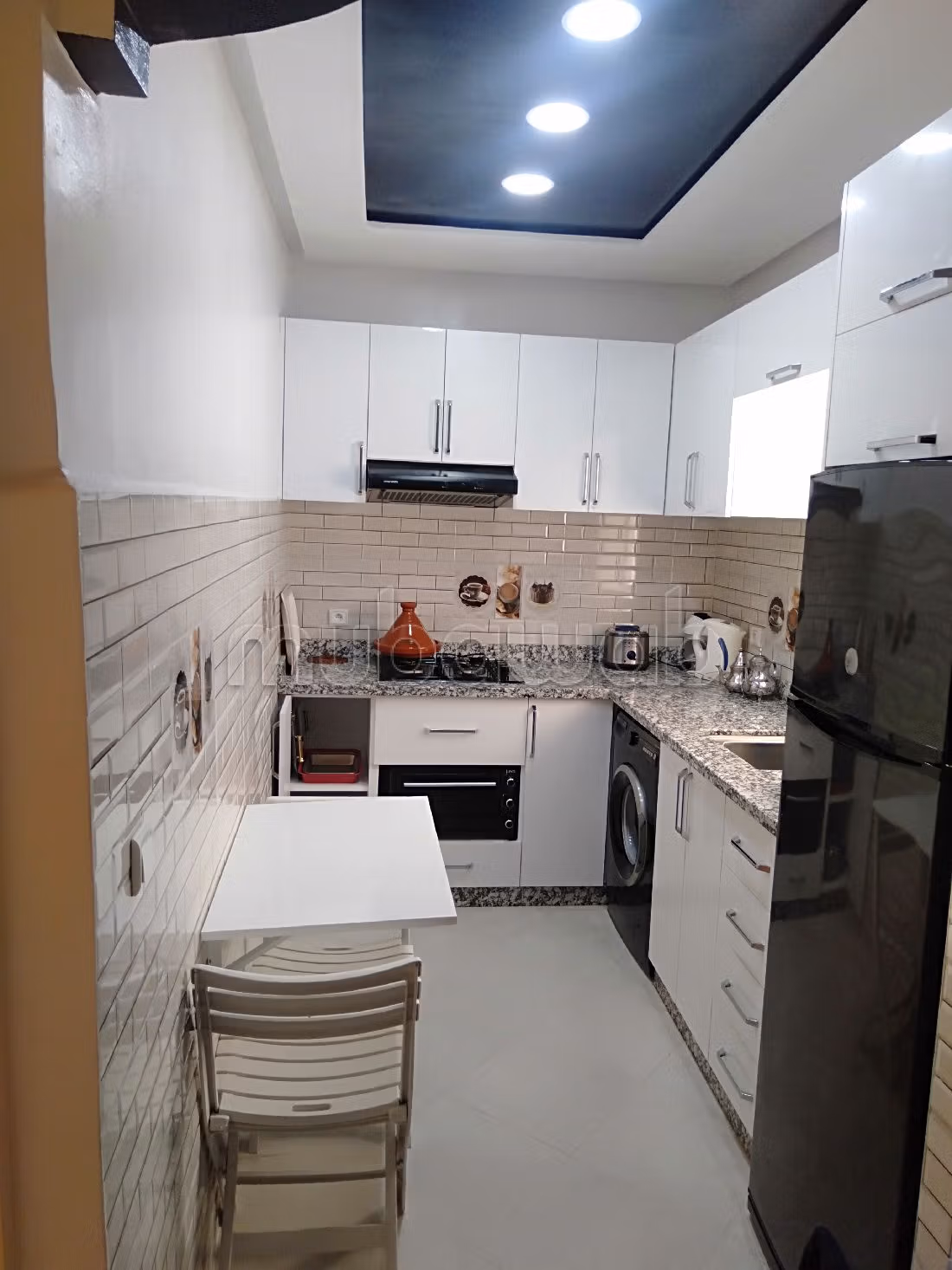 اتصل بنا إذا كنت مهتمًا بهذه الشقة بأكادير. آلة الغسيل. الهدوء مضمون مع نوافذ زجاجية مزدوجة. خدمة بواب الإقامة متاحة.