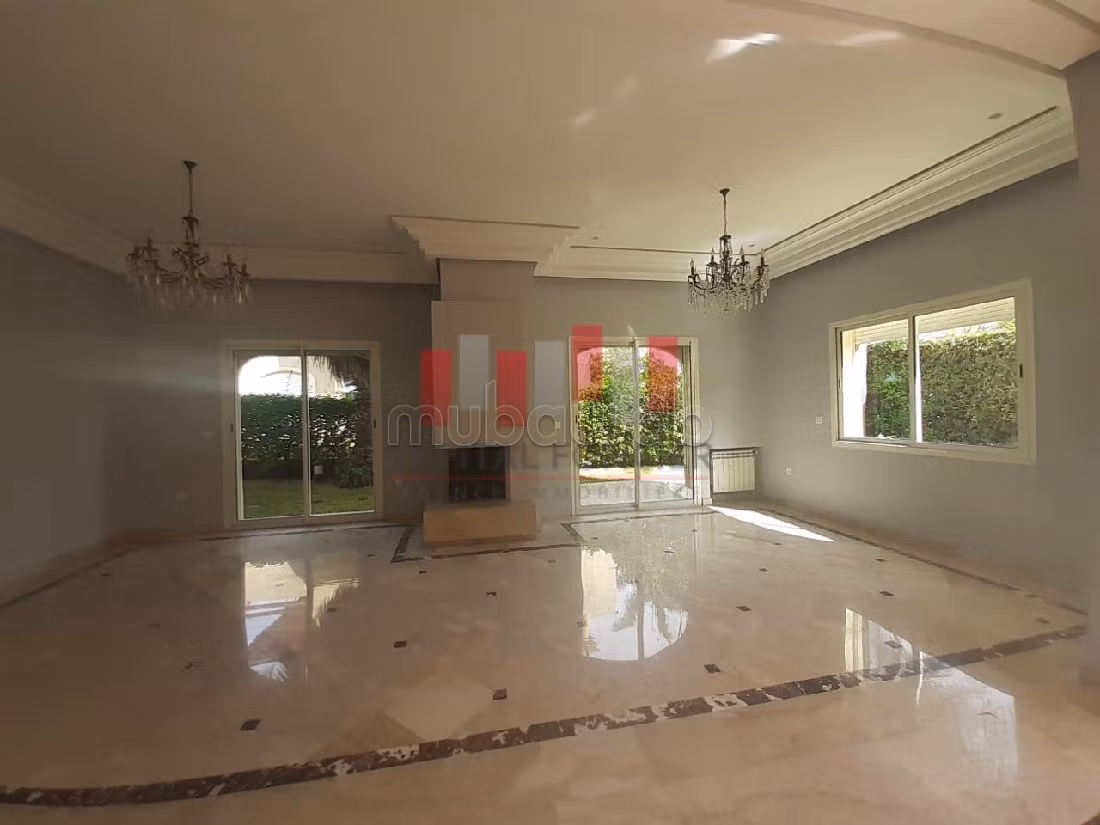 فيلا للكراء بتصميم ممتاز وجيد. السعر 34,000 د.م. غرف نوم4 ، 3 حمامات ، 500 متر مربع. .مريحة ومجهزة تجهيزًا جيدًا بمسبح ومدفأة وجهاز تكييف الهواء.