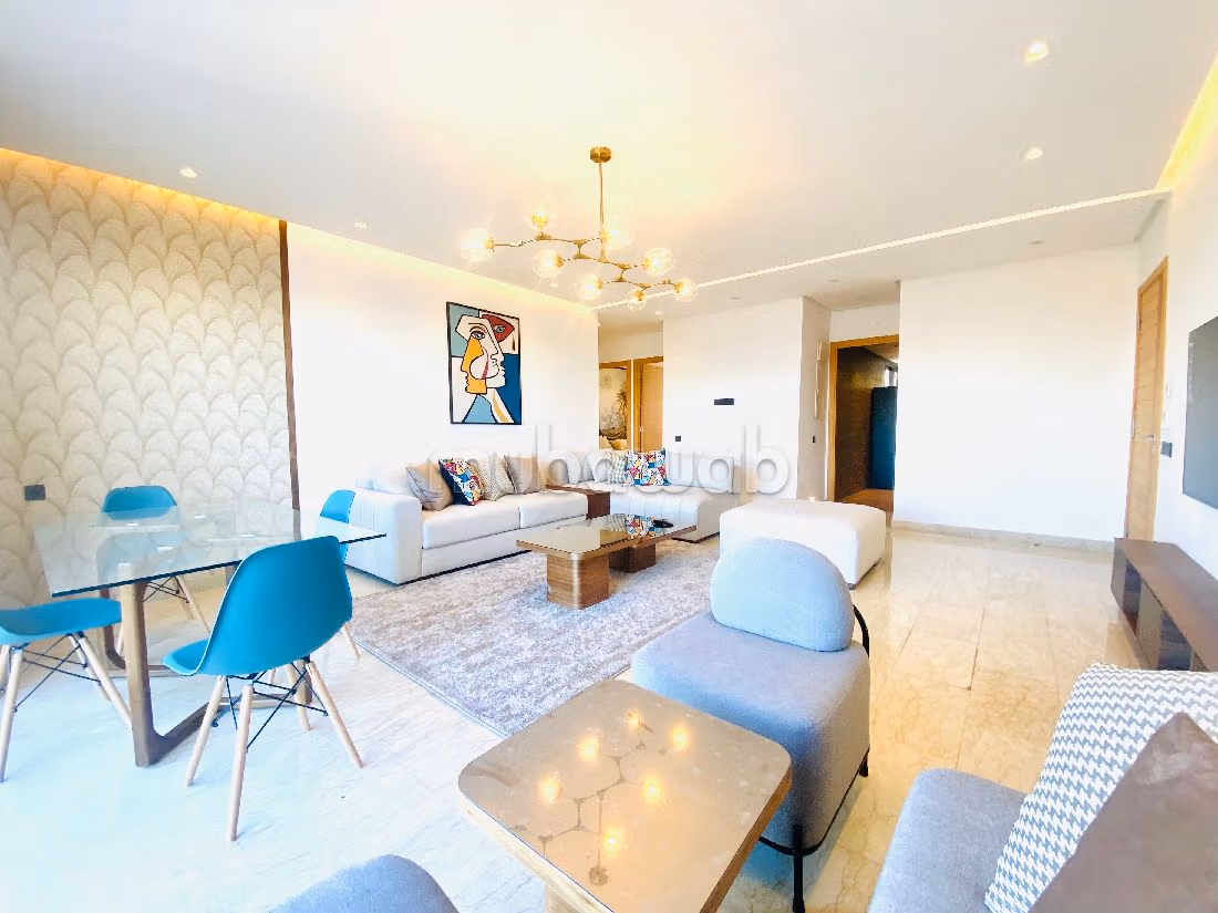 كراء شقة أحلامك. الثمن 20,000 د.م. أجزاء 4، 2 حمامات ، 150 متر مربع. 3 غرف. جديد. مفروشة جيدا.