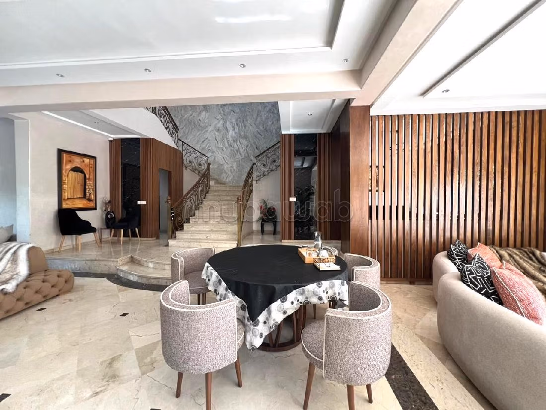 فيلا راقية للبيع. الثمن 6,600,000 د.م. غرف 4، 4 حمامات ، مساحة 460 متر مربع. 5 قطع. أقل من 20 سنة. نوع الأرض الرخام . .الراحة والأمان مع خدمة البواب الخاص بالحراسة وحوض للسباحة وجهاز تكييف الهواء.