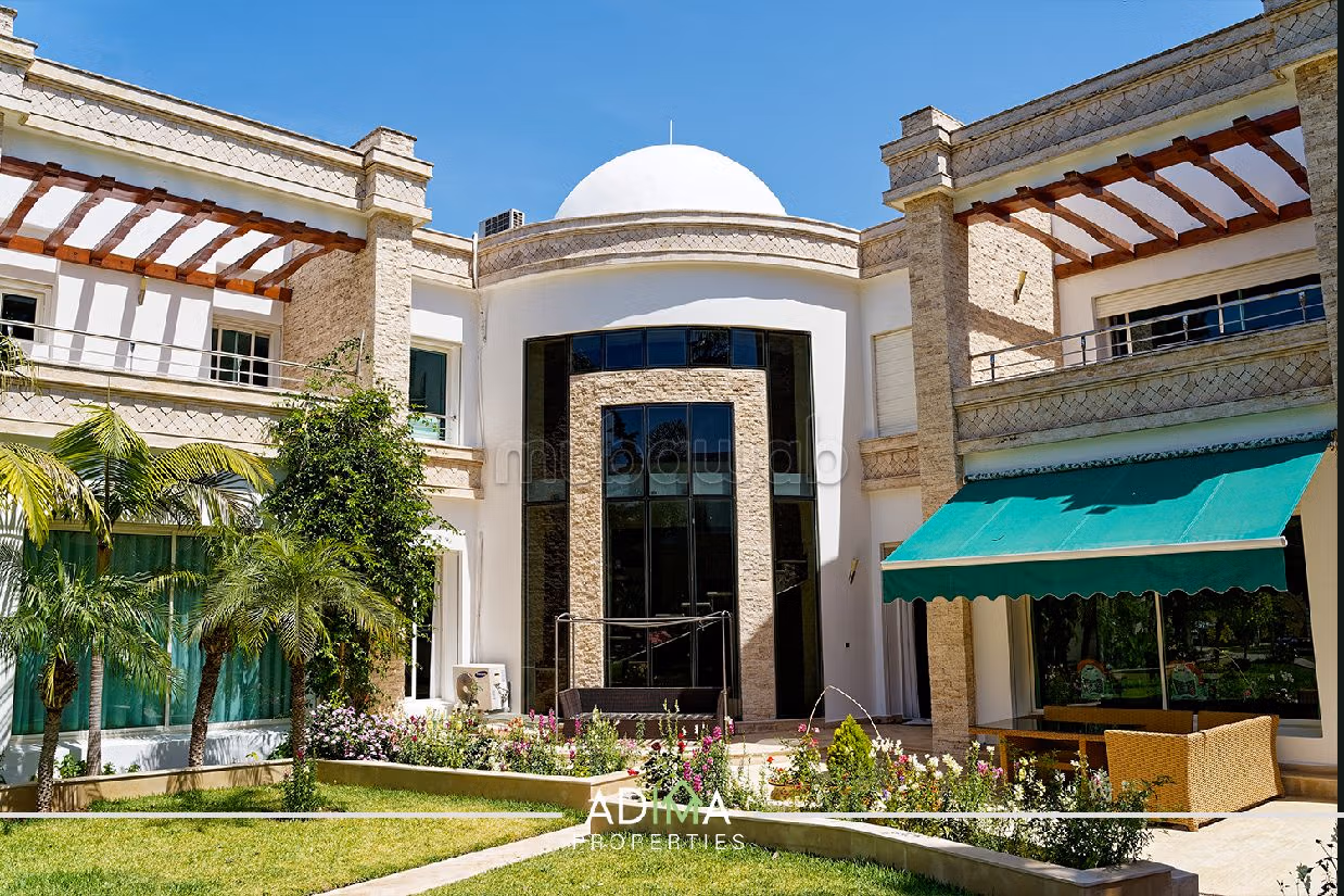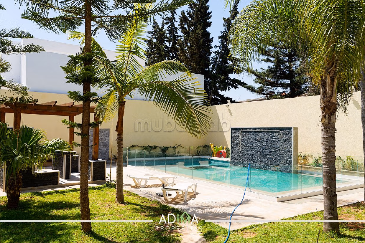 فيلا فاخرة للبيع. الثمن 30,000,000 د.م. غرف 6، 7 حمامات ، مساحة 2187 متر مربع. 12 قطع مشرقة. جديد. .العديد من وسائل الراحة: المدفأة ومكيف الهواء وحمام سباحة. الإقامة لديها أيضا خدمة الحراسة.
