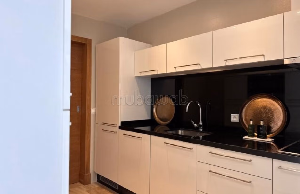 شقة مثالية للكراء. الثمن 2,200 د.م. 5 حمامات خاصة ممتازة. مفروشة جيدا.هذه الشقة للإيجار بحـي الشاطئ, طنجة. .بالإضافة إلى شرفة ، هناك أيضًا حديقة ومواقف للسيارات. مكيف.