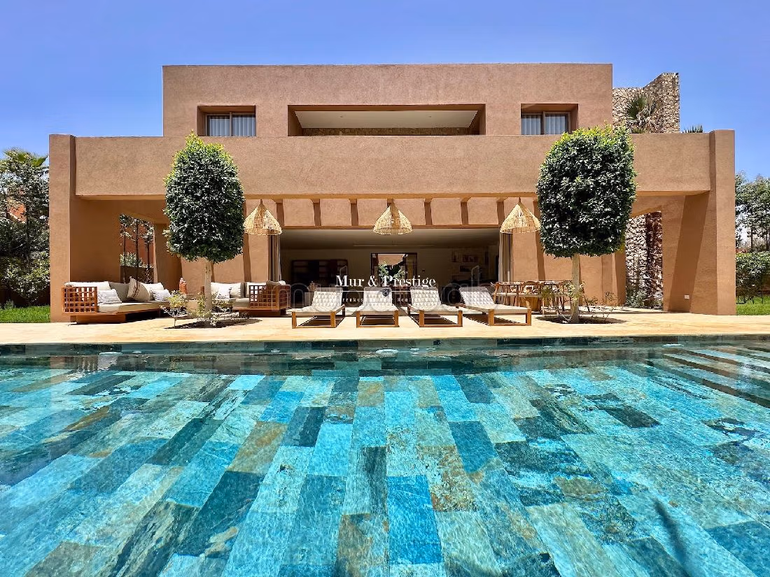 فيلا راقية للبيع. السعر 1,050,000 يورو. أجزاء 5، 5 حمامات ، مساحة 400 متر مربع. 5 غرف. بالإضافة إلى شرفة ، وموقف للسيارات موضوع تحت تصرفكم.تعال لاكتشاف فيلا فاخرة للبيع بمراكش. مسبح كبير.