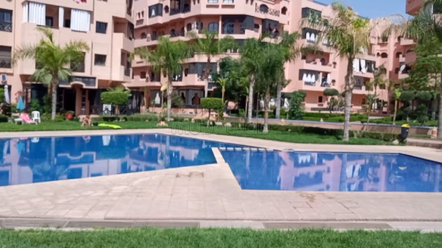 شقق للكراء بطريق الدارالبيضاء. .بالإضافة إلى شرفة ، هناك أيضًا حديقة ومواقف للسيارات. العديد من وسائل الراحة بما في ذلك مكيف الهواء وحمام السباحة. كما أن الإقامة لديها أيضا خدمة البواب الخاص بالحراسة.