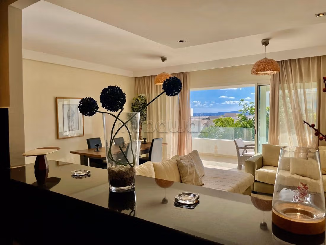 شقة جد رائعة للكراء. السعر 15,000 د.م. غرف 2، 2 حمامات ، مساحة 129 متر مربع. 3 قطع مشرقة. الطابق الثاني. أقل من 10 سنة. نوع الأرض التخشيب . مفروشة جيدا.
