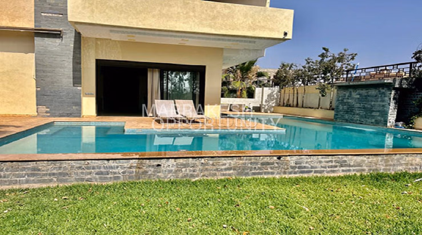 اتصل بنا لزيارة هذه الفيلا المعروضة للبيع بمراكش. مطبخ مجهز جيدا. إقامة مؤمنة.