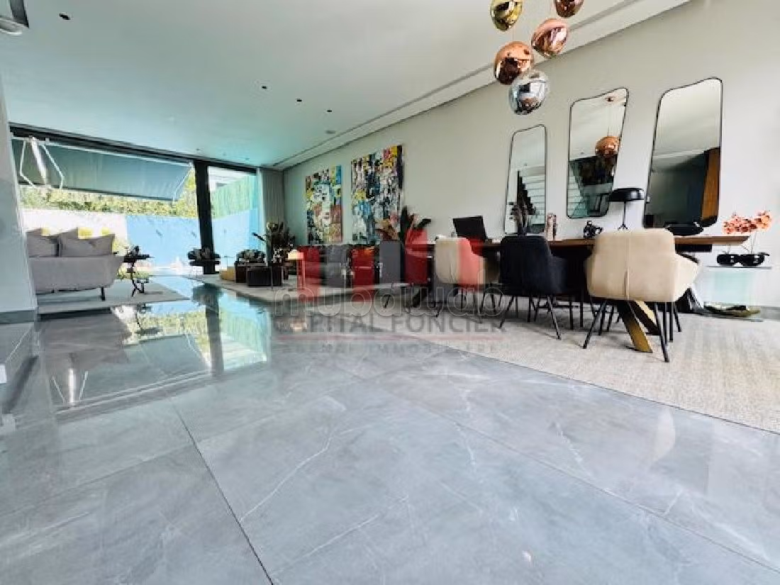 اكتشف هذه الفيلا المعاصرة الفخمة التي تبلغ مساحتها 565 مترًا مربعًا و250 مترًا مربعًا من الأرض، وتقع في أحد أكثر الأحياء رواجًا في الدار البيضاء، في عين دياب، بالقرب من أنفا. صُممت هذه الفيلا بمواد عالية الجودة وتقنيات متطورة، وتوفر بيئة معيشية فاخرة وعصرية.