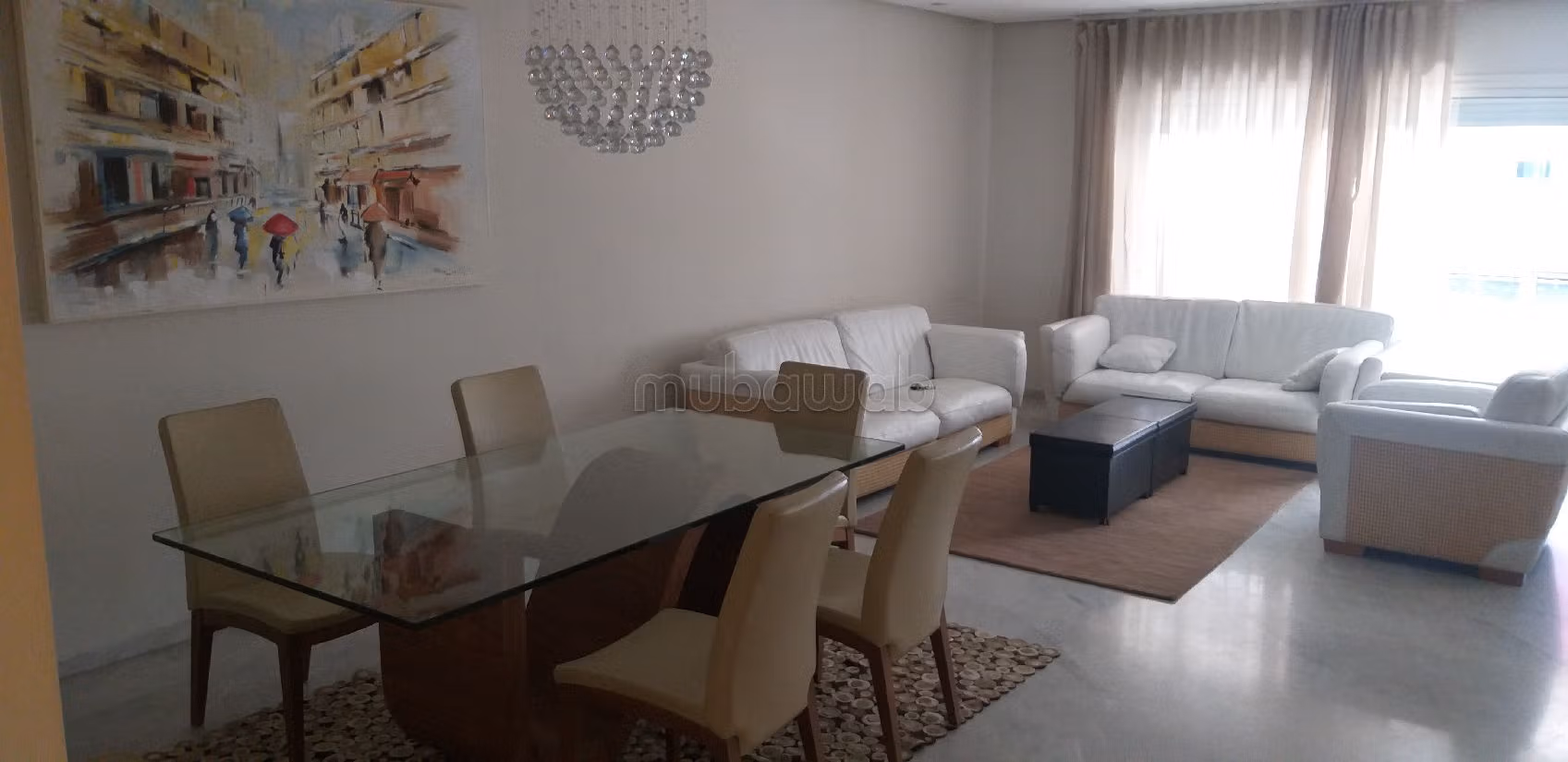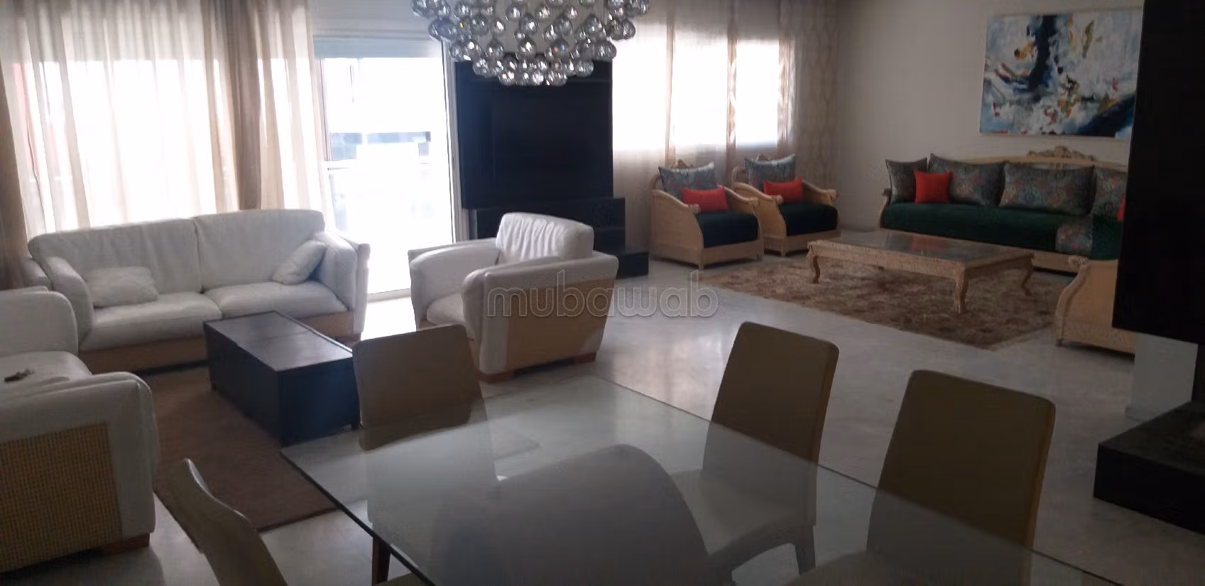 Nice apartment for rent. Price 10,000 DH. 3 rooms, 2 bathrooms, area 220 m². 5 rooms. 1st Storey. Less than 10 years. Covering: Marble. Fully furnished.