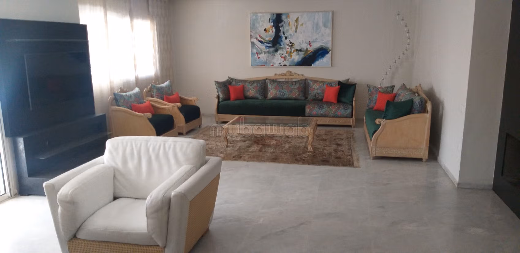 Come and check out this apartment for rent in Champ de course. Comfort and security with caretaker service, fireplace and air conditioning. Traditional decor with beautiful Moroccan living room. The property is also equipped with a satellite dish and the residence is secured.