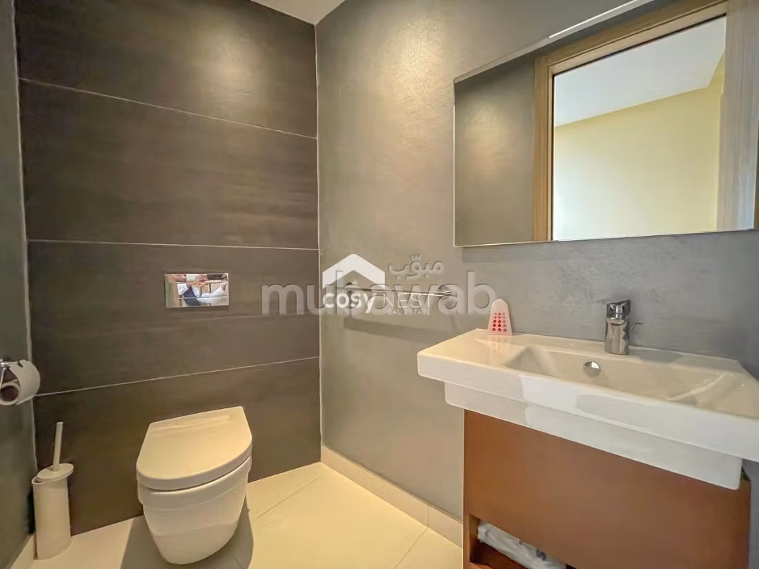 Find out about this apartment for rent. Price 13,000 DH. 2 rooms, 2 bathrooms, area 114 m². 3 rooms. 4th Property storey. Less than 1 year. Covering: Wooden. Attic.