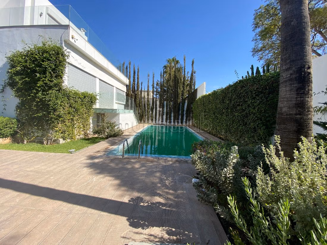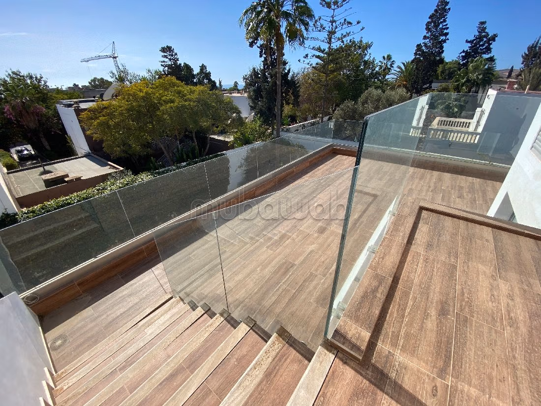 Great amenities with this villa for rent. Price 25 000 DH. 6 living areas, 5 rooms, 3 bathrooms, area 800 m². Less than 5 years. Floor type: Tiled. Private garden, No Lift, Cellar, Balcony.