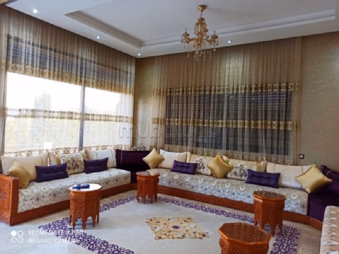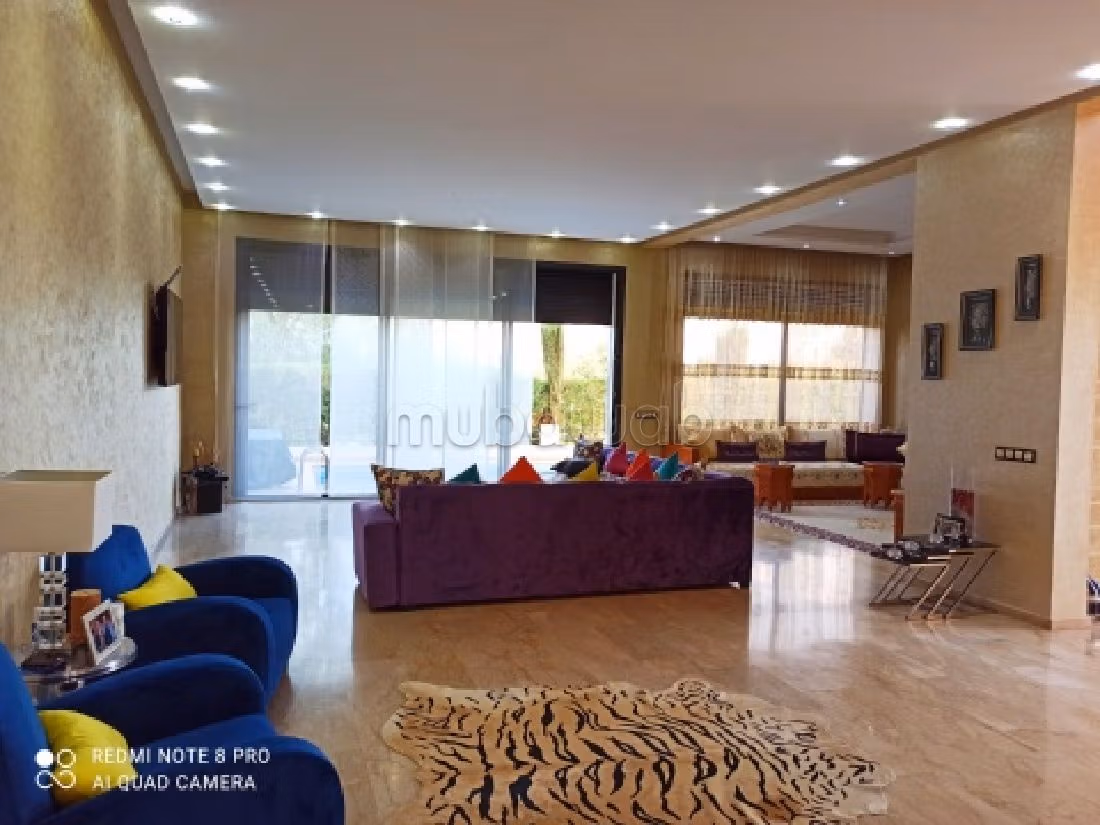 High - end amenities with this villa for sale. Price 5,500,000 DH. 8 living areas, 4 bathrooms, 446 m². 4 rooms. Less than 1 year. Floor type: Marble. Traditional decor with beautiful Moroccan living room. The property is also equipped with a satellite dish and the residence is secured.