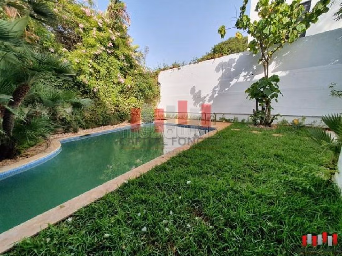 Rent this fabulous villa. Price 45,000 DH. 4 rooms, 3 bathrooms, area 700 m². Enjoy a beautiful garden. Also has a garage.