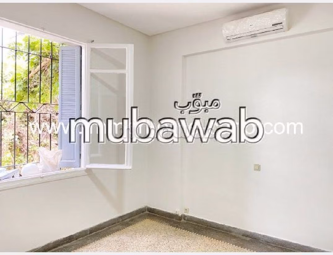 This beautiful villa is for rent in Agdal. Equipped with a satellite dish. The residence is secured. Living room with fireplace, General air conditioning System.