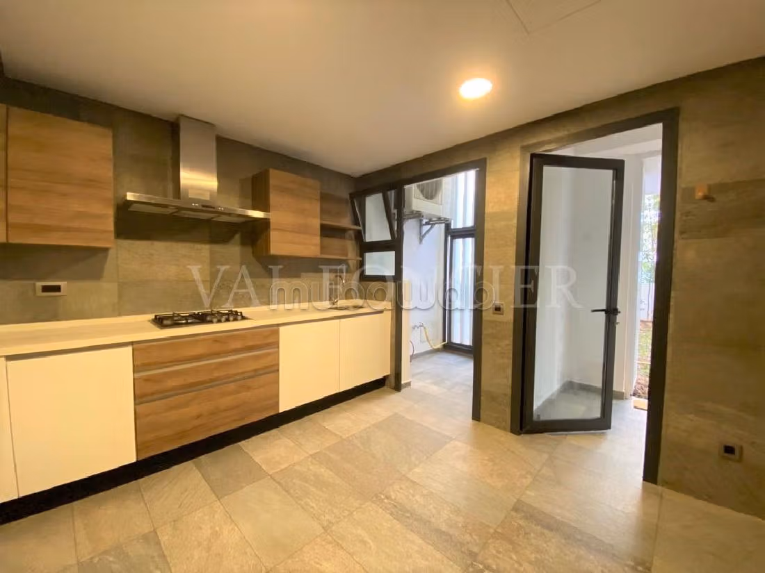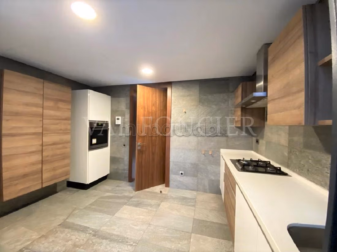 Ideally located apartment for rent. Price 13,000 DH. 3 living areas, 2 rooms, 1 bathroom, floor area 197 m². New. You will have a terrace and a garden.