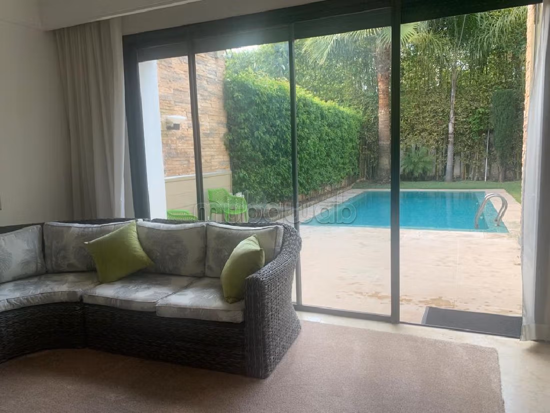 Luxury villa for sale. Price 6,600,000 DH. 11 living areas, 2 bathrooms, area 360 m². 3 rooms. Less than 5 years. Floor type: Marble. Living room with fireplace, Residence with caretaker, Residence with swimming pool, Integrated air conditioning.