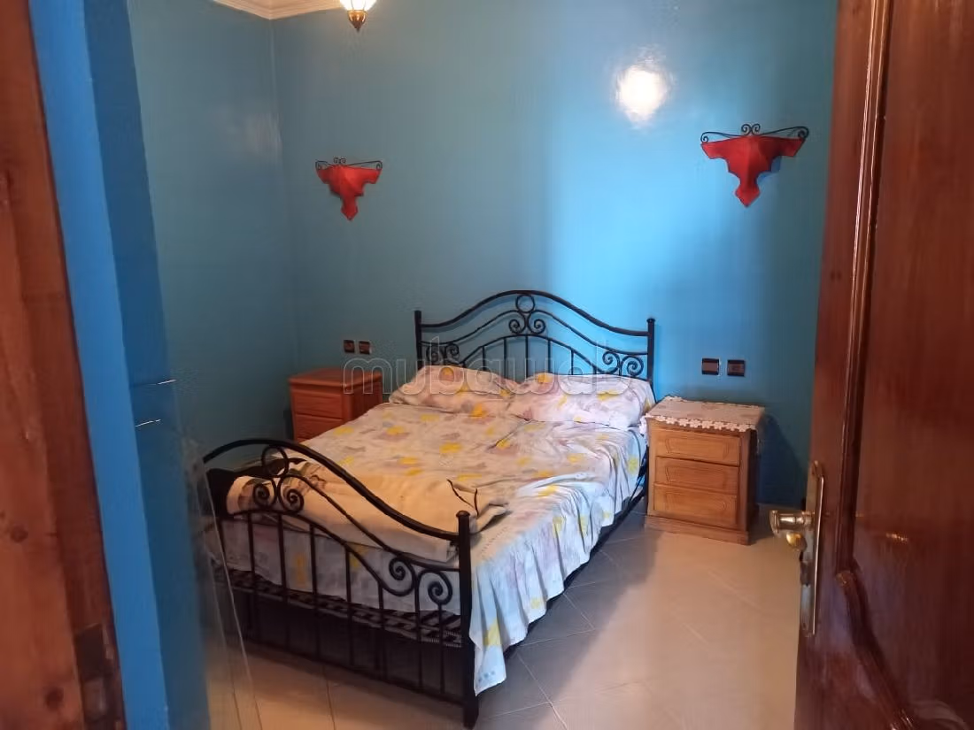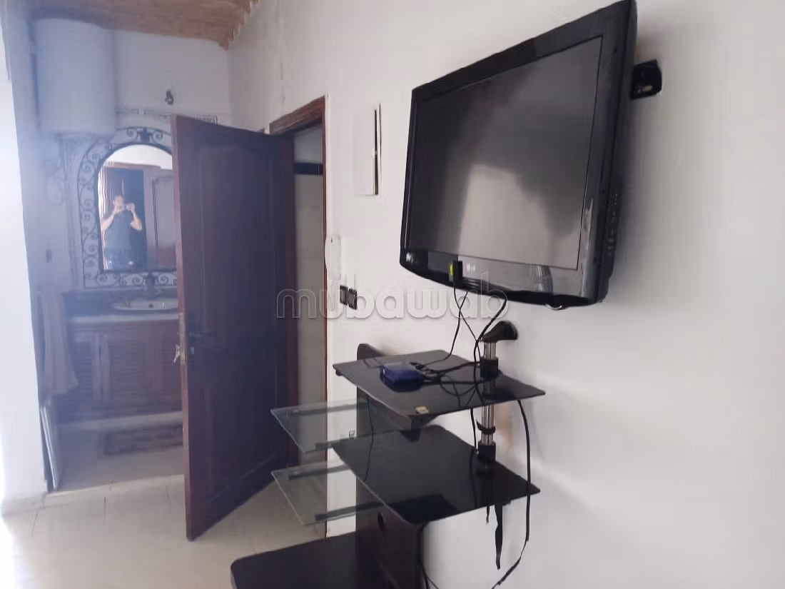 This apartment is for rent in Centre ville. Furnished Moroccan living room, General satellite dish, Secured neighbourhood. Connected TV.