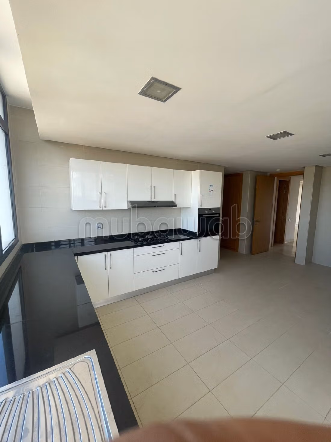 Ideally located apartment for rent. Price 35,000 DH. 8 living areas, 4 private bathrooms, 360 m². 4 bedrooms. 7th Storey. Good condition. Comfort and security with caretaker service, fireplace and air conditioning.