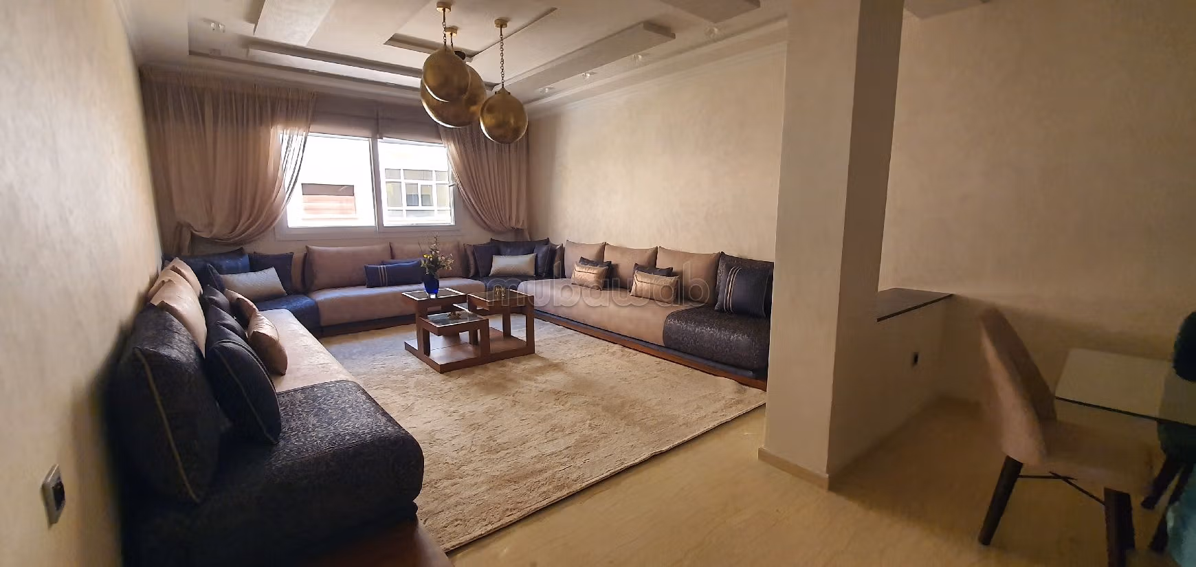 Buy your apartment. Price 1,200,000 DH. 3 rooms, 2 bathrooms, area 148 m². 7 rooms. 1st Level. Less than 5 years. Floor type: Marble. Large balcony.