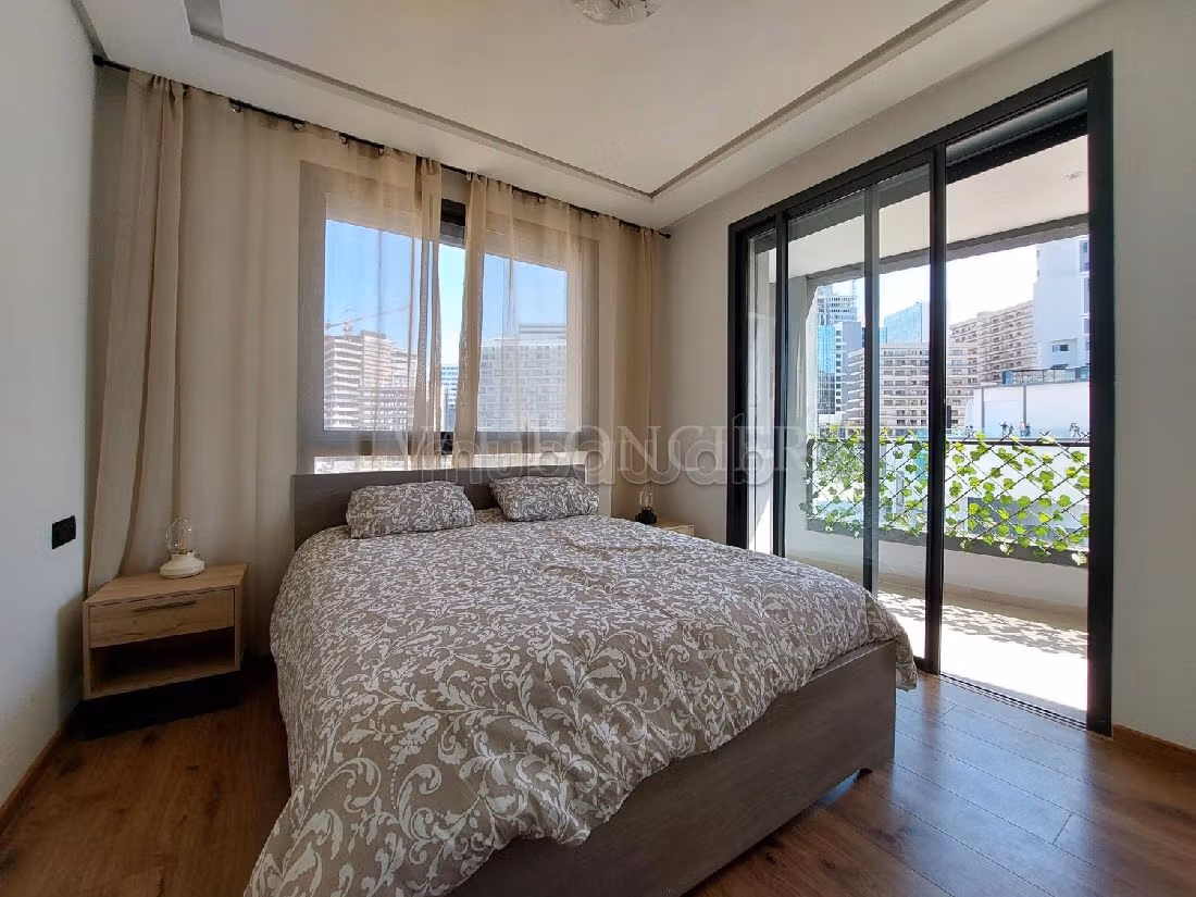 This apartment is offered for rent in Casablanca Finance City. Fully equipped kitchen. Security.