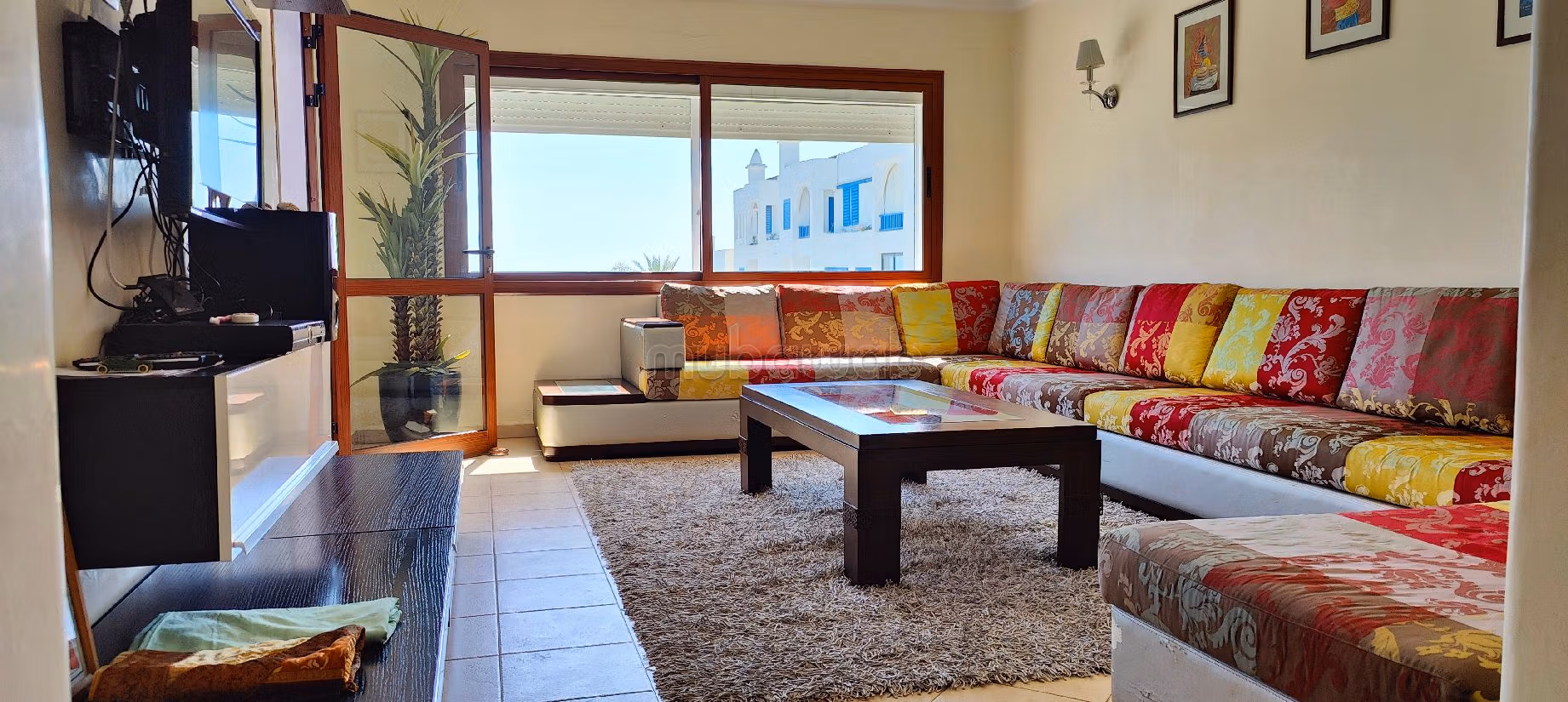 Ideal if you want to buy an apartment . Comfort and tradition with a beautiful Moroccan living room. The property also has a satellite dish and the residence is secured. Many amenities including air conditioning and swimming pool. The residence also has a caretaker service.