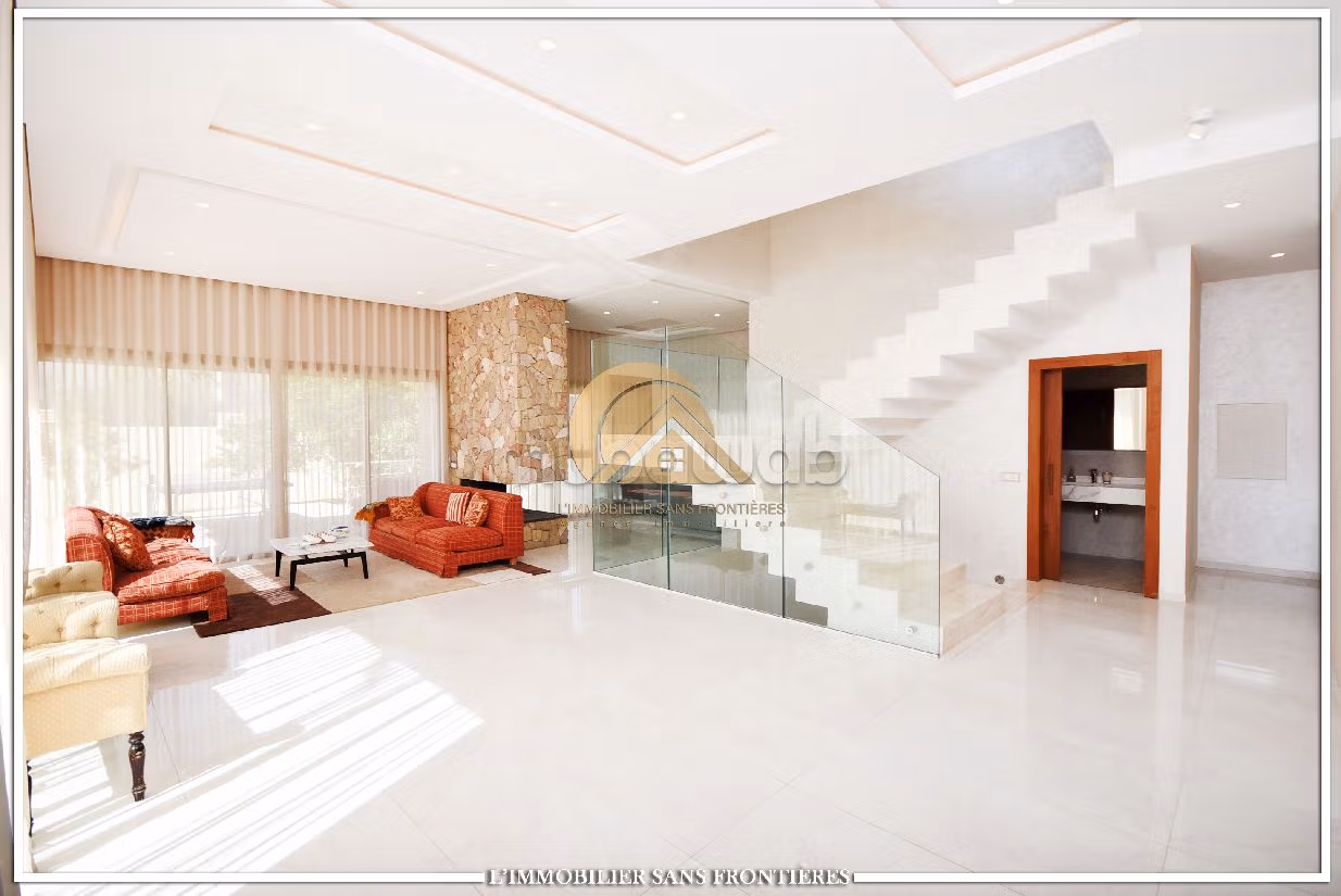 Refinement and comfort with this villa for sale. Price 6,000,000 DH. 5 rooms, 5 bathrooms, 420 m². 8 rooms. Less than 1 year. Floor type: Marble. Comfort with security and central heating, reinforced door and double glazing. In addition, a magnificent view of the mountains.