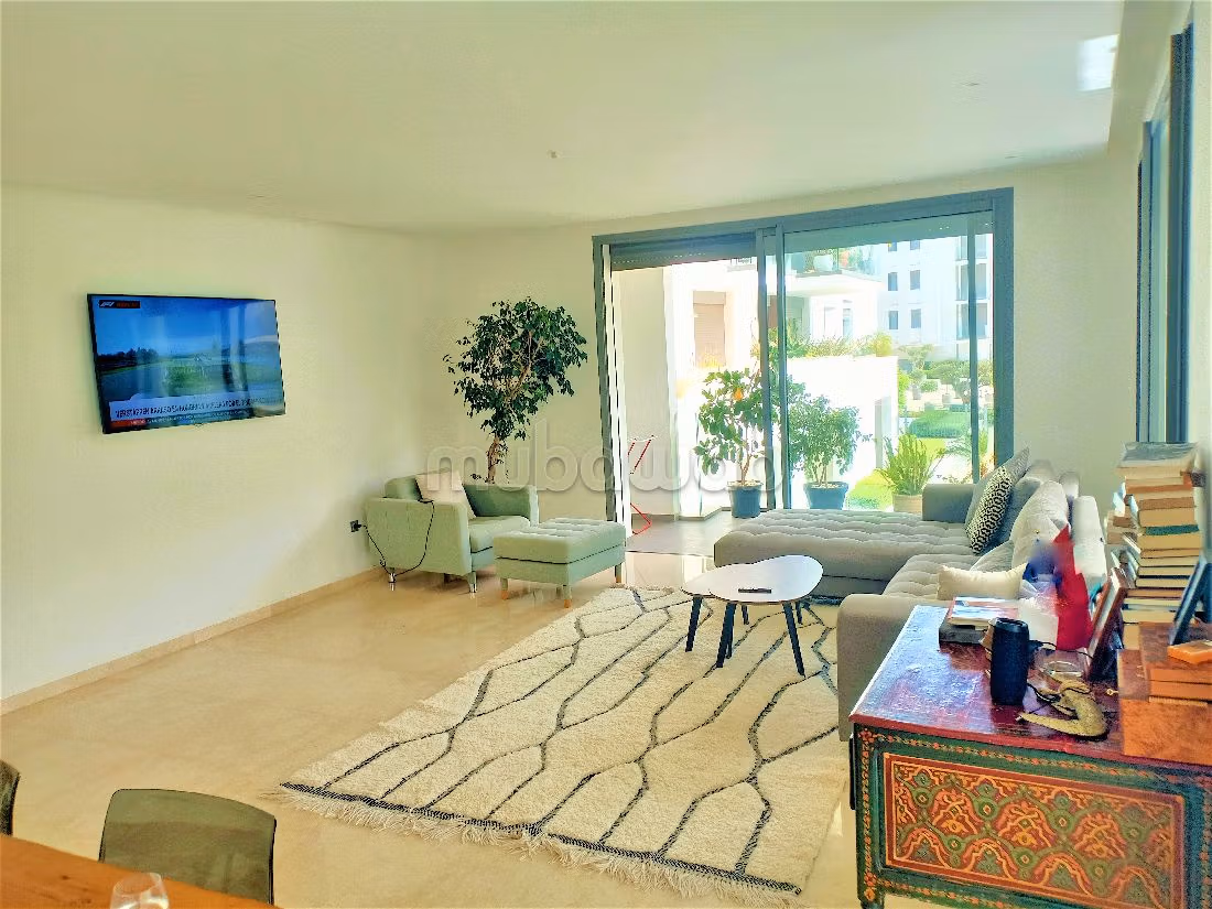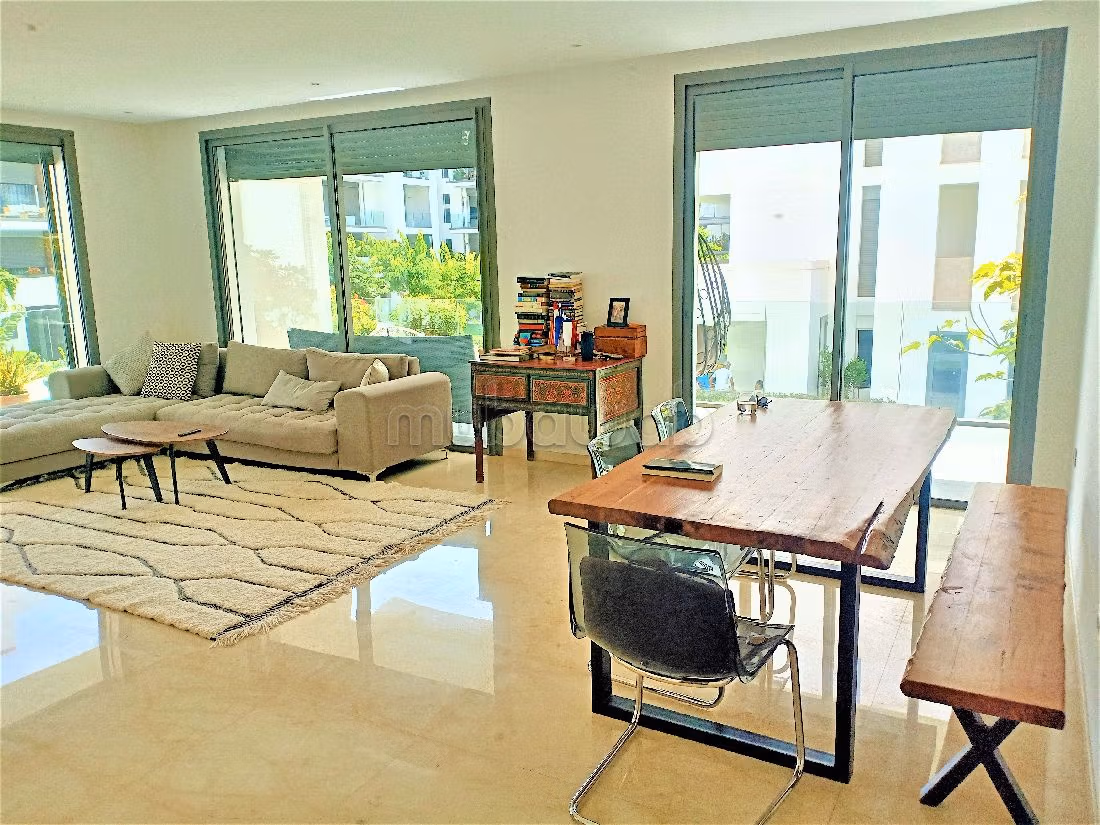 Rent your dream apartment. Price 25,000 DH. 3 living areas, 2 bathrooms, 122 m². 2 bedrooms. 1st Ground floor. Less than 5 years. Floor type: Marble. Fully furnished property.