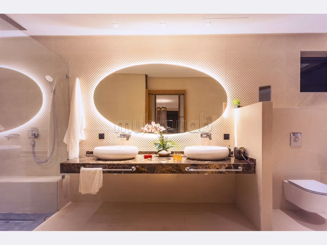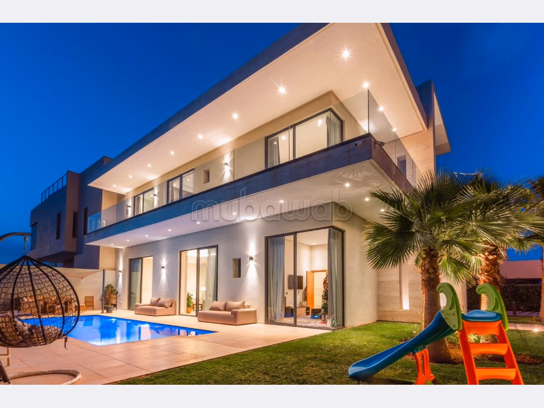 Exceptional villa for sale. Price 7,000,000 DH. 5 living areas, 4 private bathrooms, 508 m². 4 rooms. Less than 1 year. The property is fully furnished.