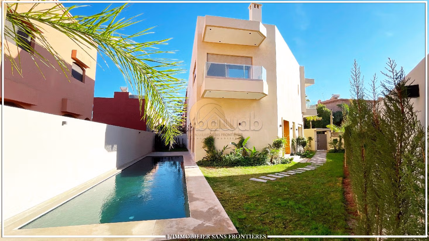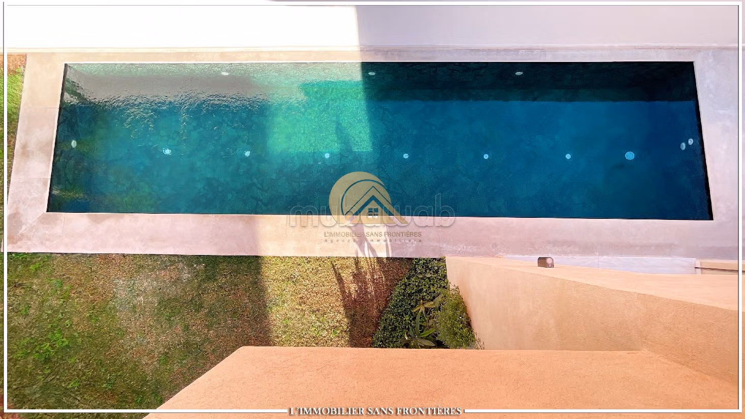 High quality amenities with this beautiful house for sale. Price 4,900,000 DH. 7 living areas, 5 bathrooms, area 433 m². 5 bedrooms. Less than 1 year. Floor type: Marble. Quiet surroundings with mountain view, central heating, reinforced door and double glazing.