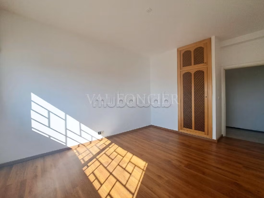 Ideal apartment for rent. Price 9,000 DH. 4 living areas, 2 private bathrooms, 132 m². 3 bedrooms. Good condition. Has a terrace and a garage.