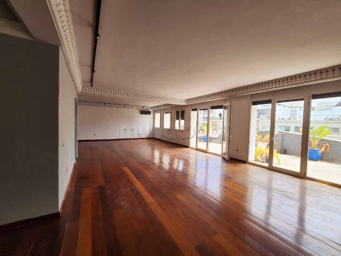Ideal apartment for sale. Price 8,500,000 DH. 12 living areas, 6 bathrooms, 700 m². 5 bedrooms. 3rd Storey. Less than 1 year. Covering: Wooden. Enjoy a beautiful terrace. Also has a lift and a garage.