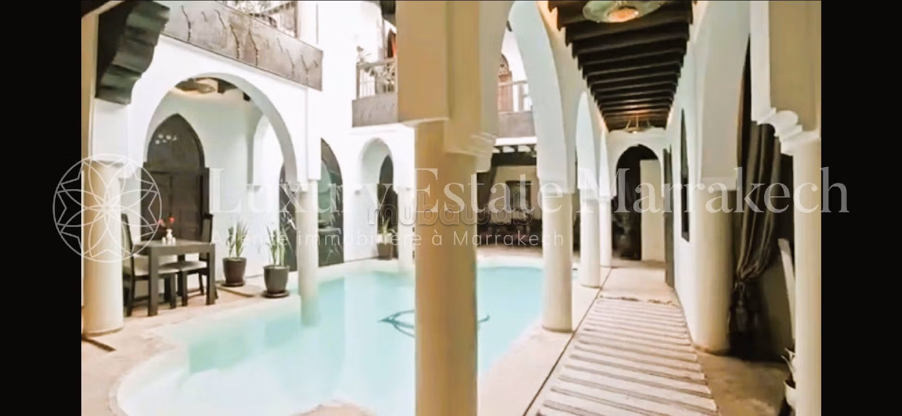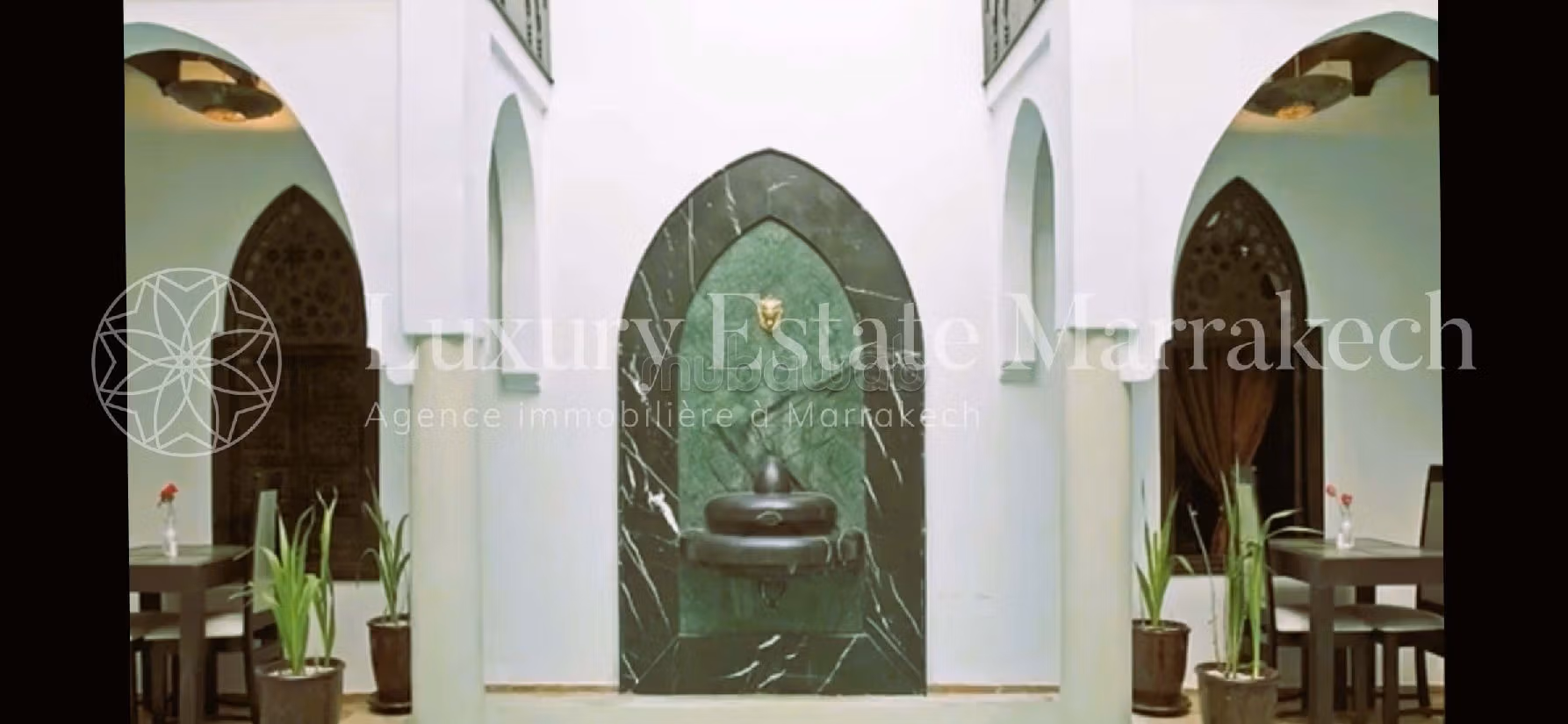 Ideally located riad. Price 870,000 EUR. 7 bedrooms, 7 bathrooms, 350 m². 14 rooms. Less than 5 years. Floor type: Tiled. Living room with fireplace, Residence with caretaker, Residence with swimming pool, General air conditioning.