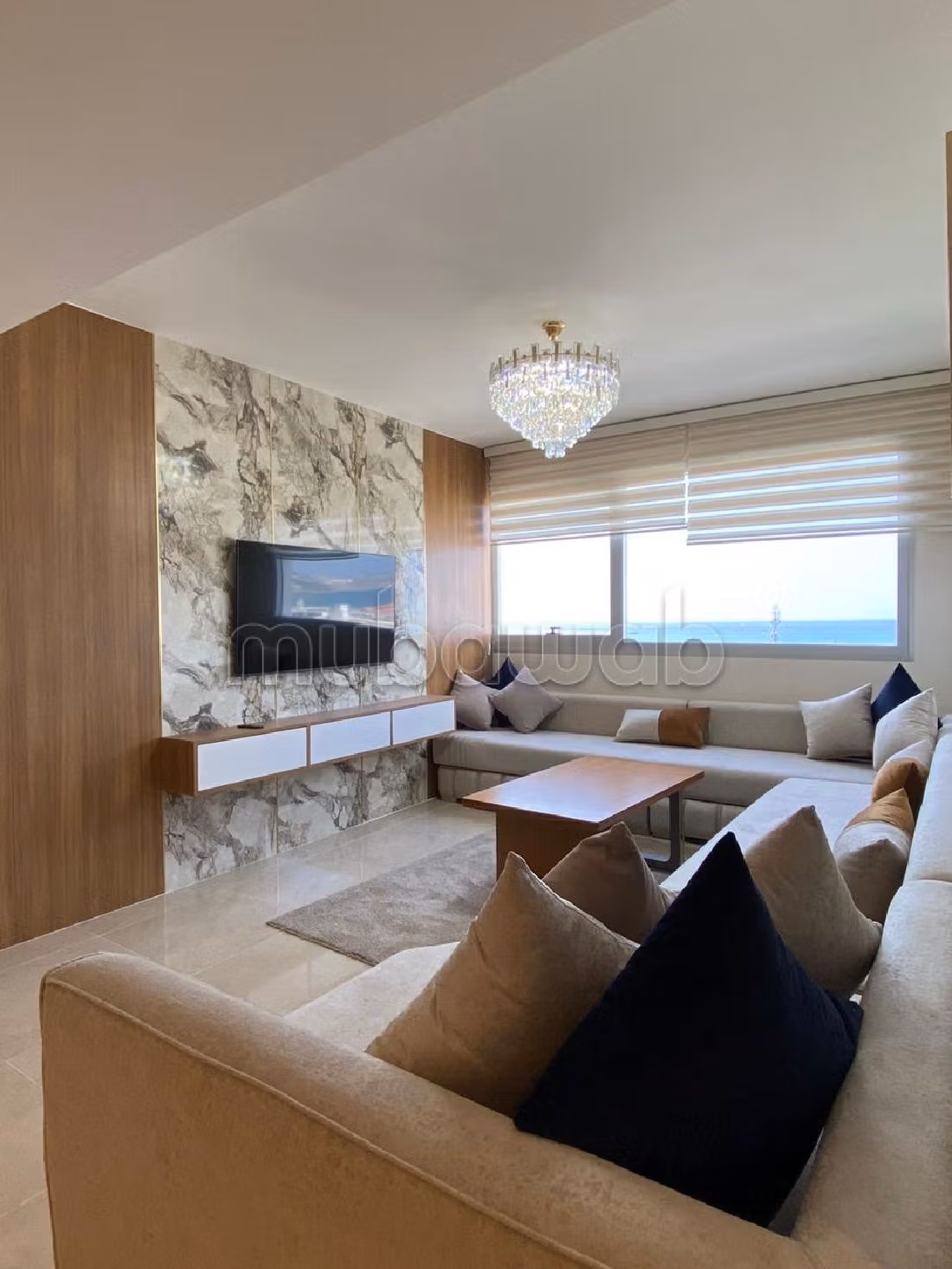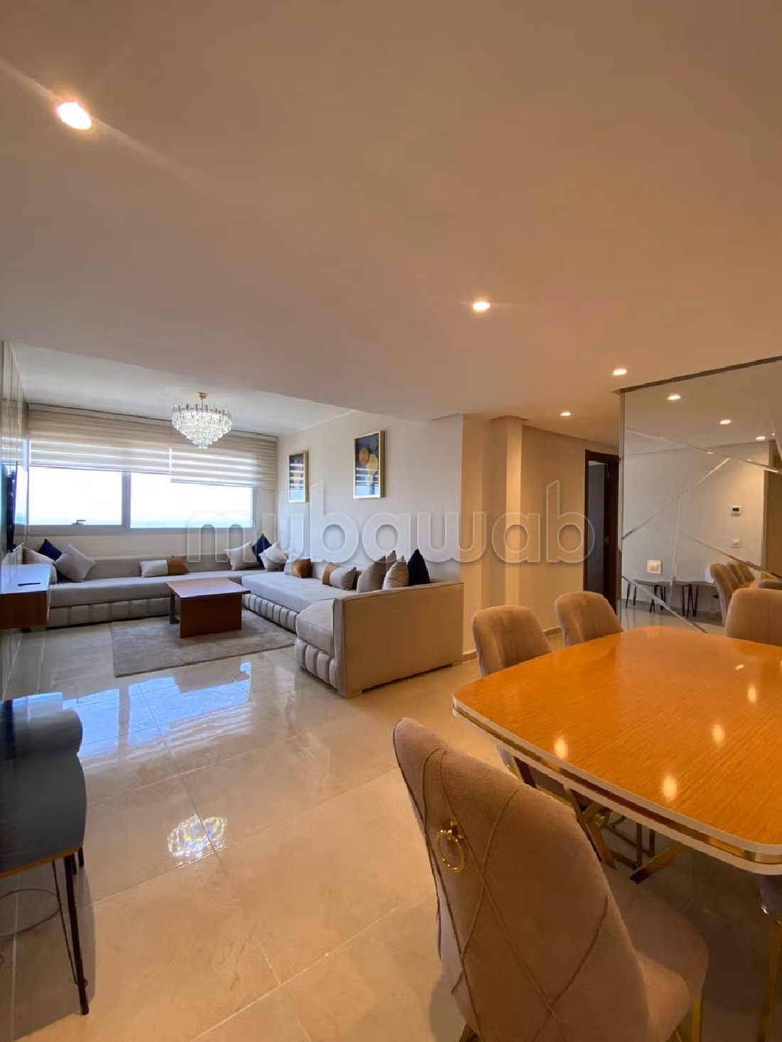 Beautifull apartment for rent. Price 14,000 DH. 3 living areas, 2 private bathrooms, 105 m². 2 rooms. Less than 1 year. Fully furnished.