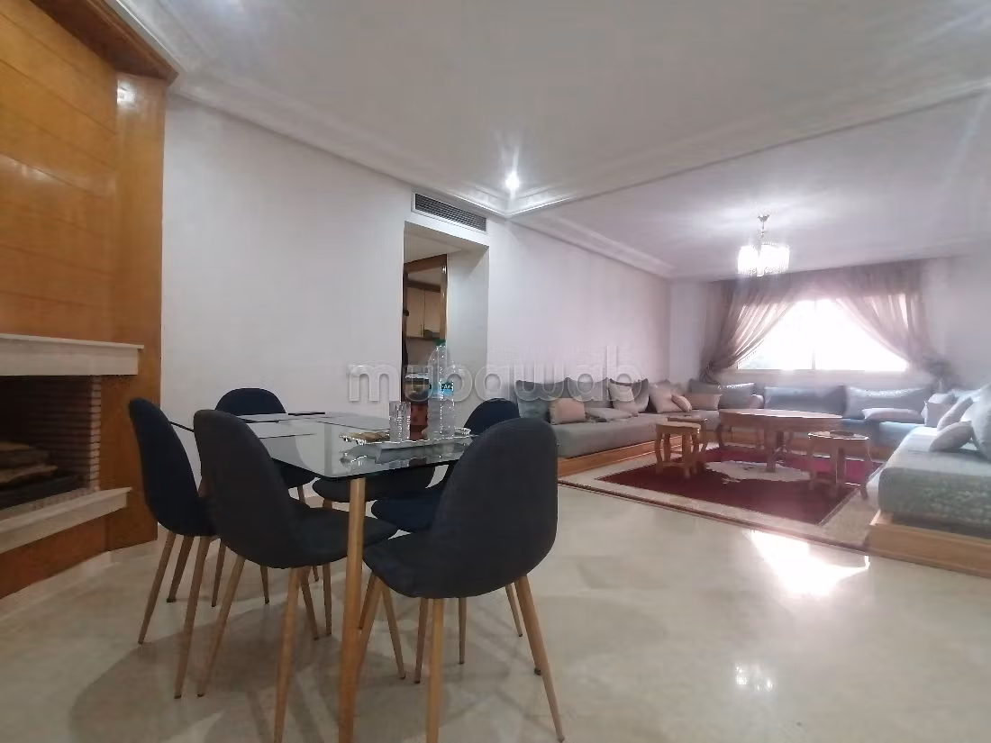 Look over this apartment for sale. Price 1,500,000 DH. 3 living areas, 2 bathrooms, 91 m². 2 rooms. Less than 10 years. Floor type: Tiled. Living room with fireplace, Residence with caretaker, Residence with swimming pool, Integrated air conditioning.
