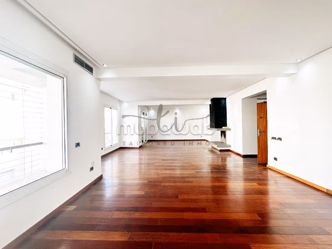 Nice apartment for rent. Price 18,500 DH. 11 living areas, 3 bathrooms, area 320 m². 3 rooms. 4th Ground floor. Less than 5 years. Covering: Wooden. No Lift, Large terrace.