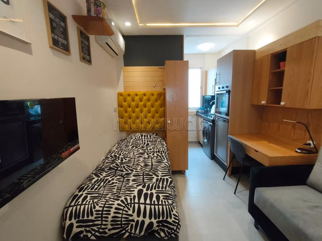 Ideally located apartment for rent. Price 3,799 DH. 1 bathroom, area of 13 m². 1 Living areas. 1 bedroom. 5th Level. Less than 1 year. Floor type: Marble. Ample storage space.