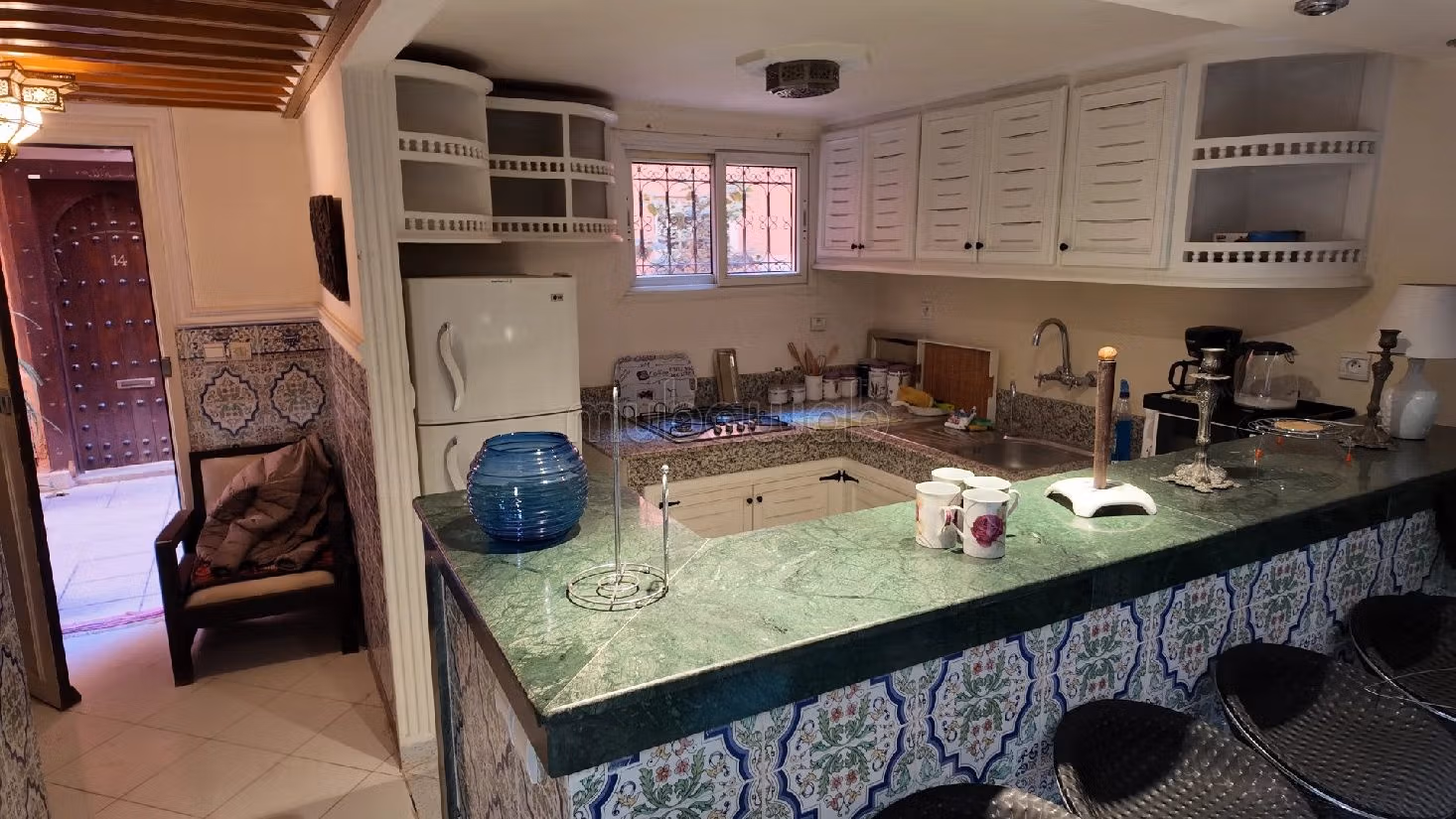 Contact us if you are interested in this riad. Furnished Moroccan living room, Residence with security. Built-in oven. Quiet surroundings with mountain view.