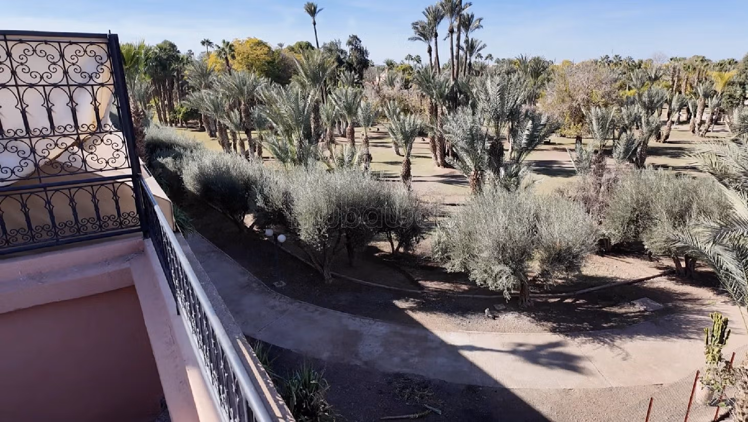 This riad is offered for sale in Ennakhil (Palmeraie). Comfort and security with caretaker service, swimming pool and fireplace. Garden and terrace suitable for relaxation.