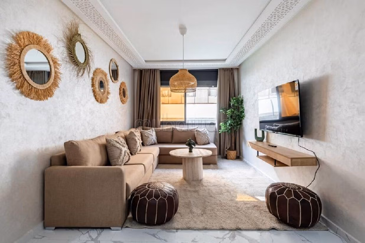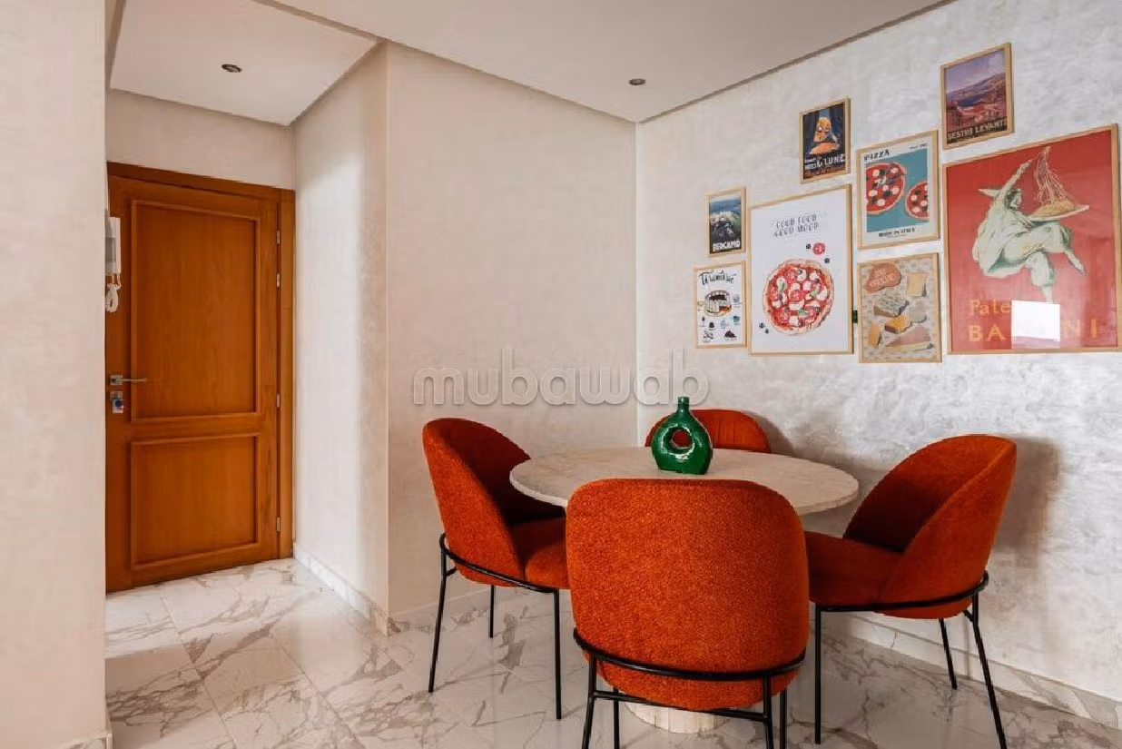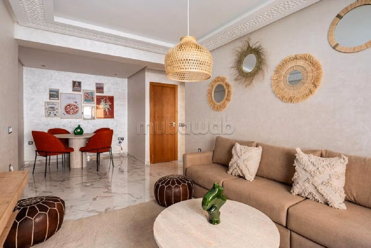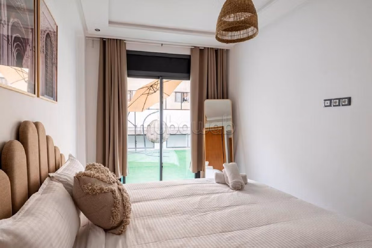 Riad for rent up for grabs. Price 750 DH. 2 living areas, 2 bathrooms, area 80 m². 1 bedroom. New. Floor type: Tiled. Perfectly equipped residence with lift and carpark. You will also enjoy a garden with a beautiful terrace.