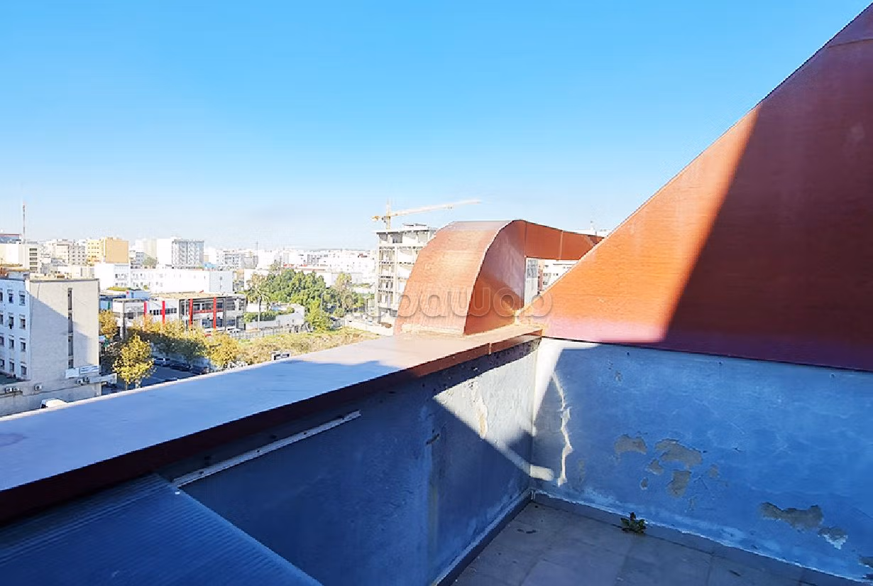 Offices for rent. Price 4,900 DH. 1 bathroom, area of 80 m². 5th On the top floor. Less than 10 years. Covering: Tiled. Has a terrace. Residence with lift.