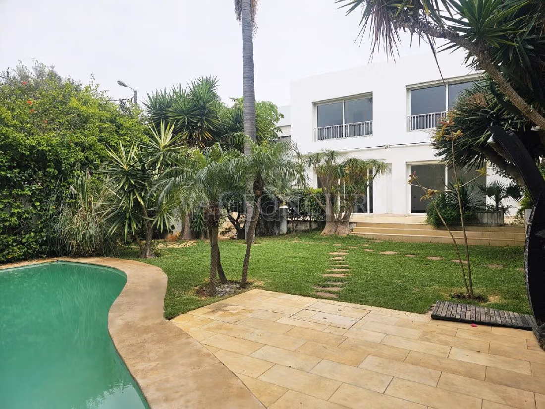 Exceptional villa for rent. Price 65,000 DH. 5 rooms, 3 bathrooms, area 1000 m². Absolute comfort with swimming pool and fireplace.