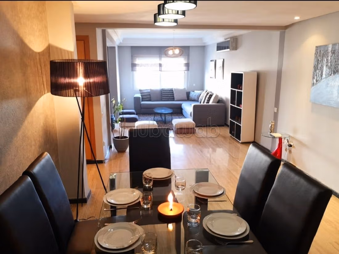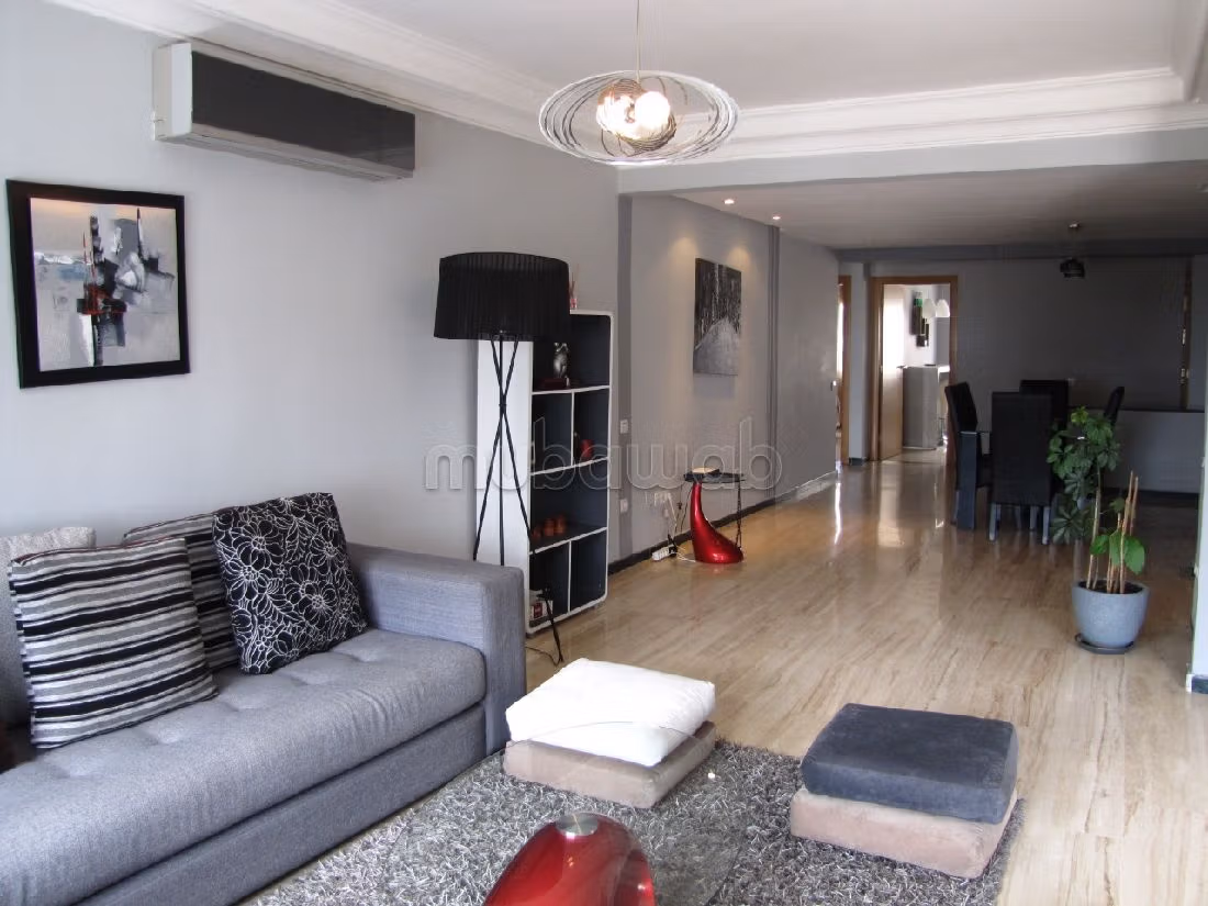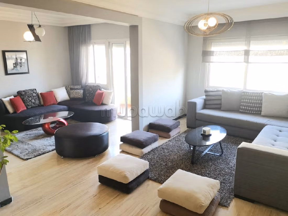 Rent your dream apartment. Price 11,000 DH. 3 living areas, 2 bathrooms, 110 m². 2 rooms. 4th Ground floor. Less than 10 years. Covering: Marble. Dressing room.